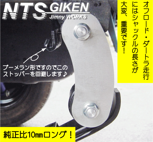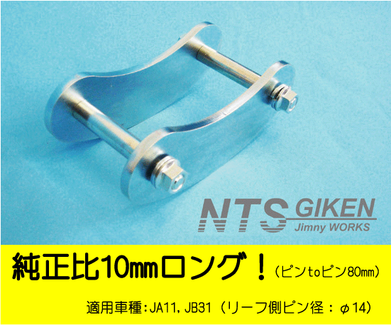 【数量2個(左右)】ジムニー用ブーメランシャックル(リア用)【純正比10mmロング(ピンtoピン80mm)】 JA11 クロカン jimny NTS技研