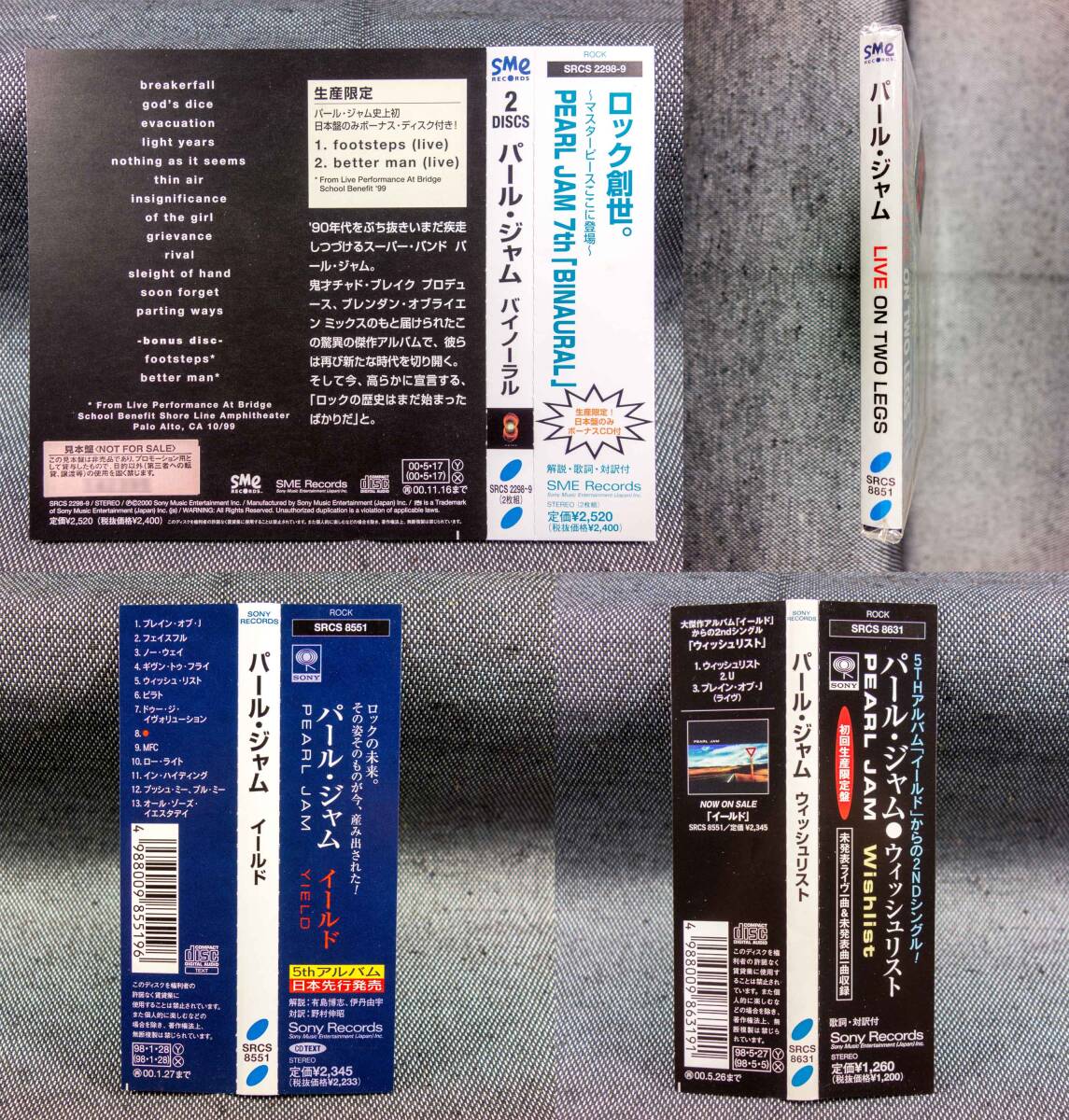 ジャケット:3面折り込みタイプのデジパックスリーブです。スリーブ表面の上方に小さなヨゴレが数か所、それ以外にも全体的に薄いキズなどありますが、いずれもそれほど目立つものではありません。英語のカラーブックレットと日本語解説のモノクロブックレットが付いています。いずれも目立つダメージはありません。 ディスク:目立たない非常に薄いキズが数か所ある程度で状態良好です。ボーナスディスクに目につくキズはありません。見本盤です。 帯:表面に小さな薄いシミが1か所あります。裏面左下に見本盤シールが貼り付けられています。 ② LIVE ON TWO LEGS (brand new factory sealed・promo) [SME RECORDS SRCS 8851](未開封新品)