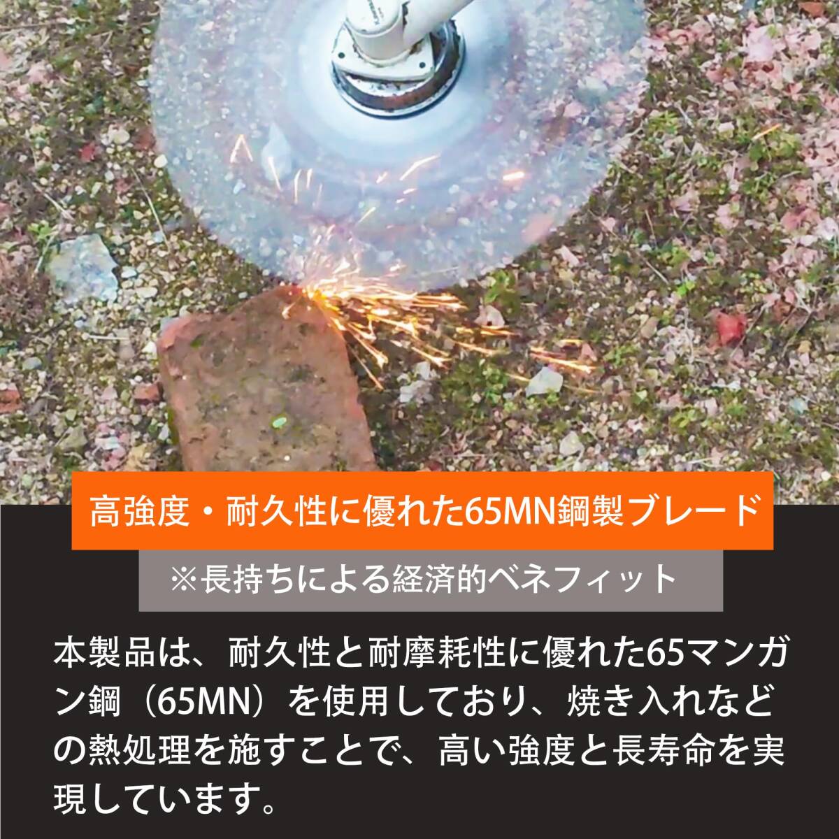 【長持ちする切れ味】特殊加工により、繰り返し使用しても切れ味が長持ち。効率的な草刈りを実現し、作業時間を短縮します。草刈り機 替え刃としての品質と耐久性が自慢です。
