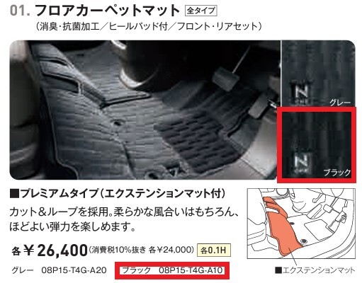 プレミアムタイプのフロアマット一式 (ホルダー、エクステンションマット付き)未使用 になります。 カラーはブラックです。 08P15-T4G-A10 | ||||