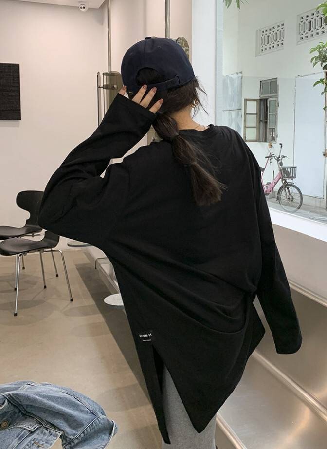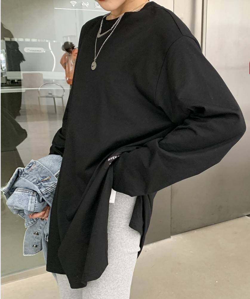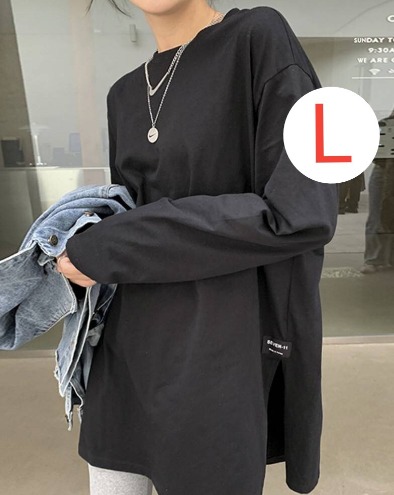 レディース 長袖 ロンT ロングtシャツ 無地 シンプル 黒 カットソー ブラック カットソー