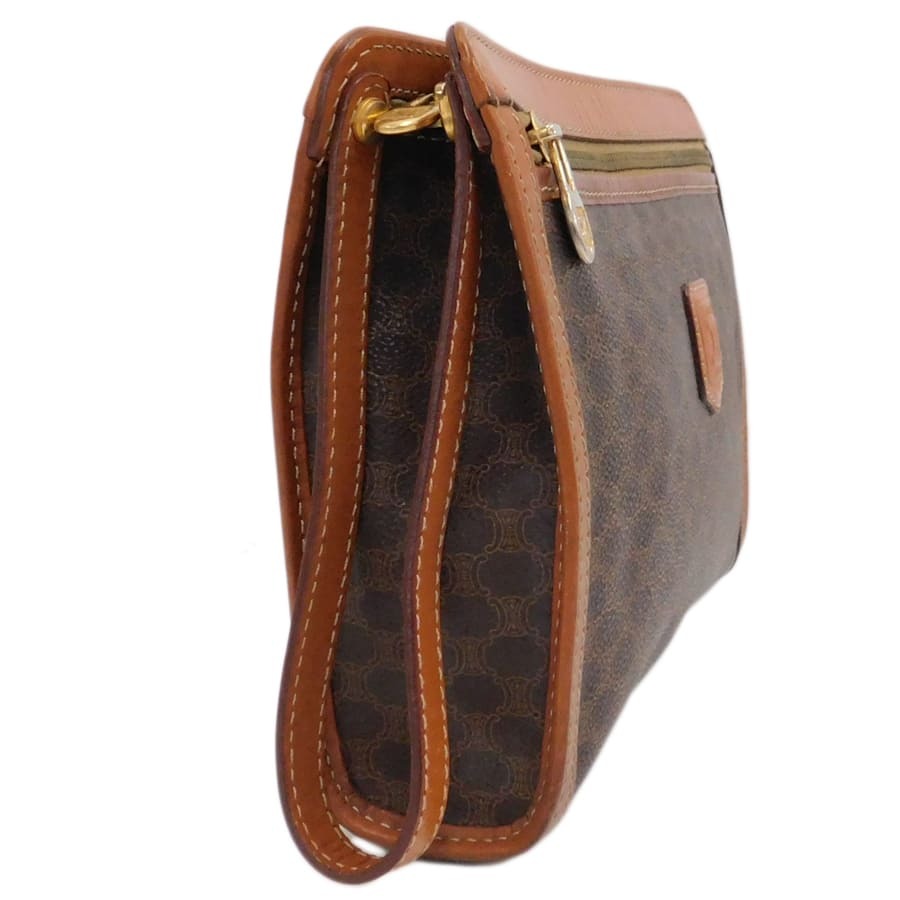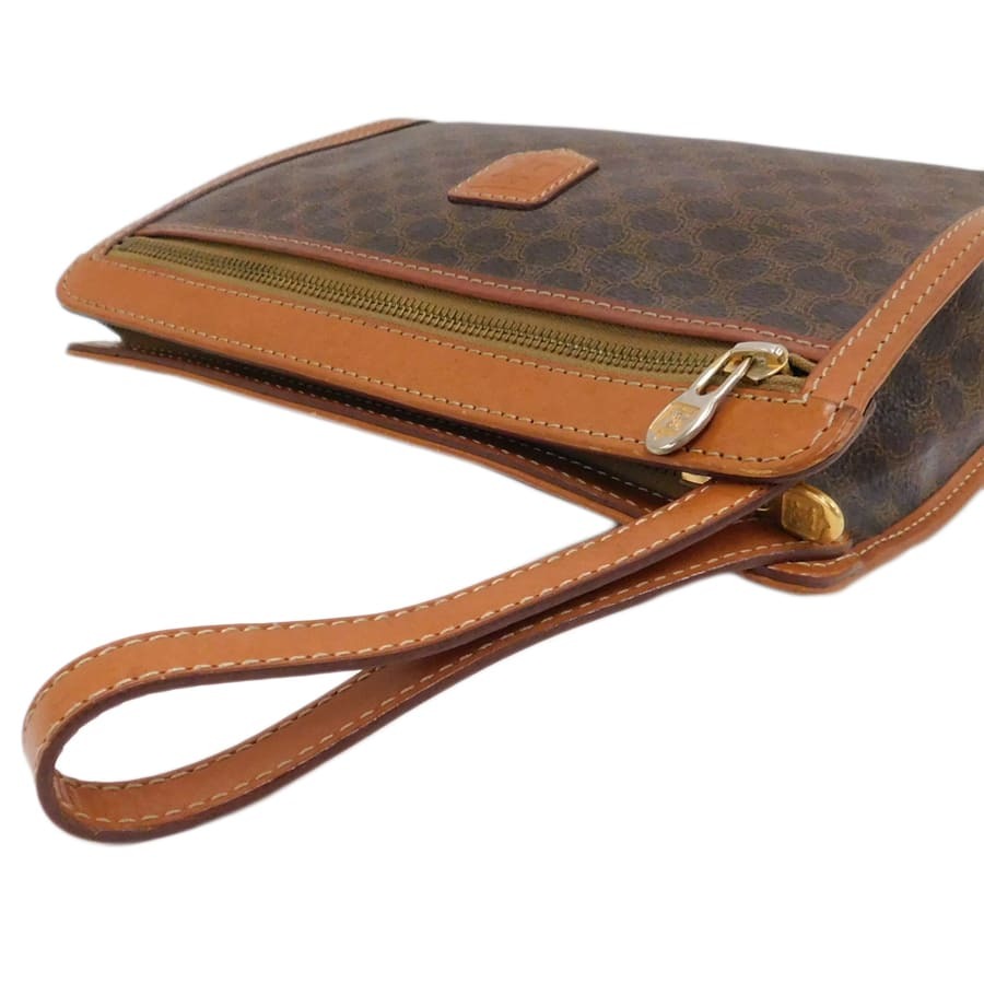 1円■美品/セリーヌ/セカンドバッグ/M93/ブラウン系/PVC×レザー/マカダム/普段使い/CELINE ■E.Bll.tl-28[中古]