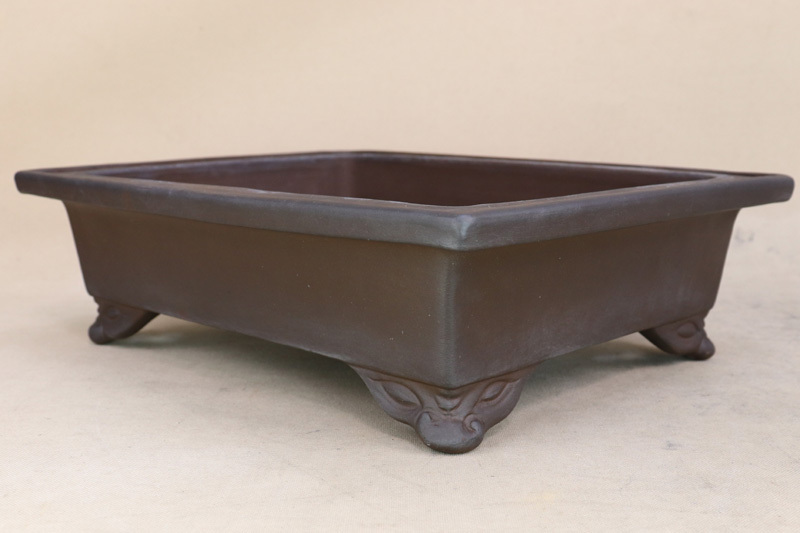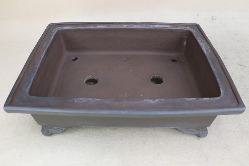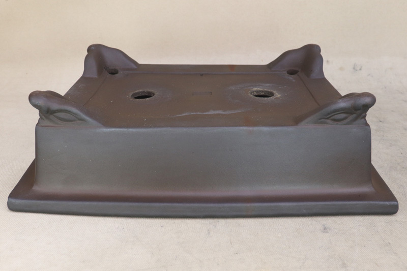 【盆栽鉢】山秋作 紫泥外縁長方鉢(無傷)中型サイズ【盆吉】003