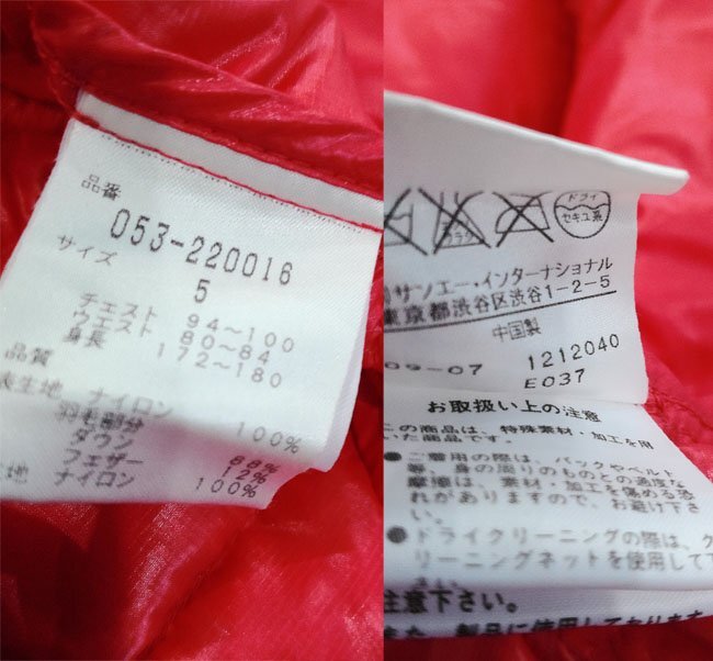 | 材質 | 表生地/ナイロン 100% 羽毛部分/ダウン 88% フェザー 12% 裏生地/ナイロン 100% |