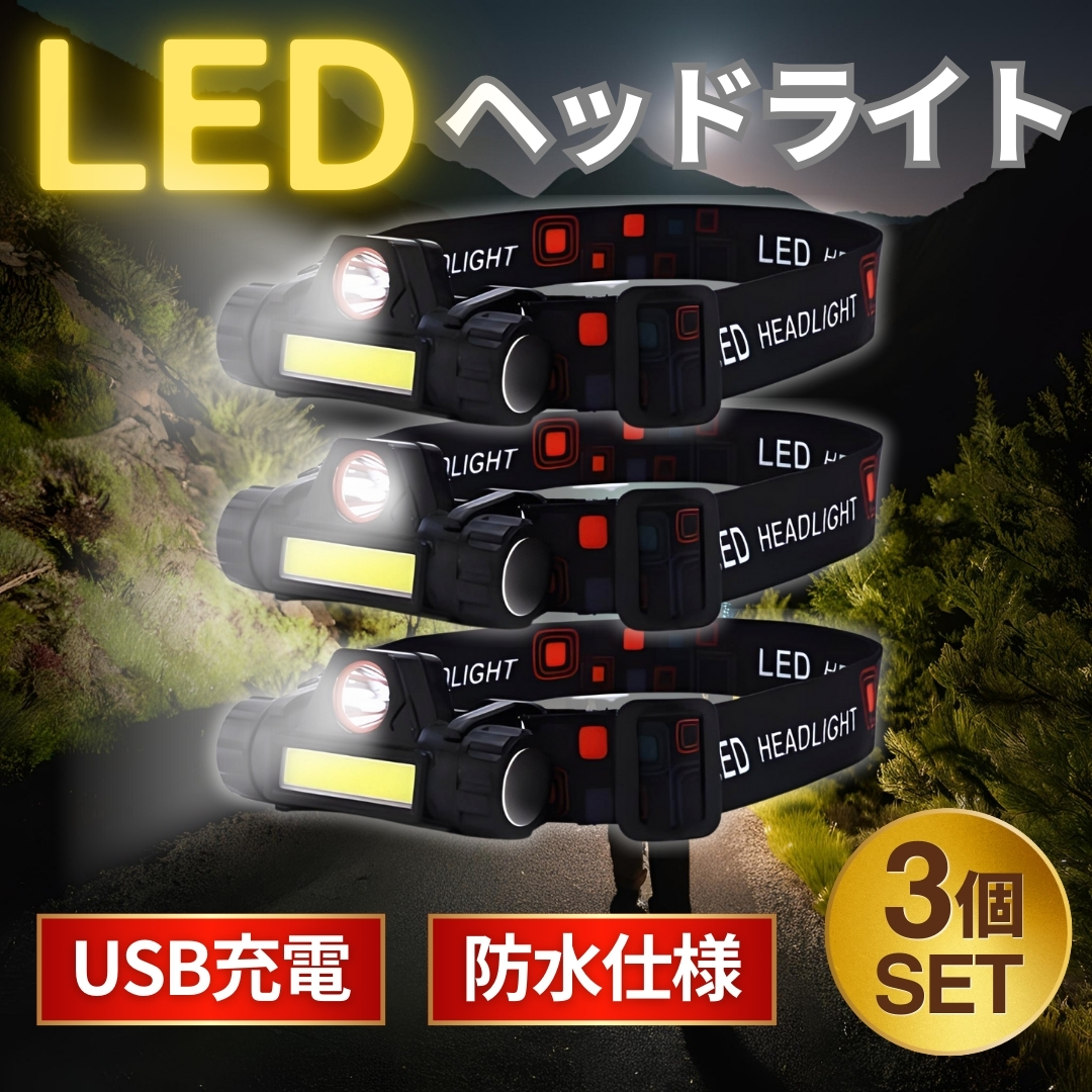 LEDヘッドライト ヘッドランプ 3個 充電式 防水 キャンプ アウトドア 防災グッズ ヘッドランプ ヘッドライト 災害 避難 送料無料 匿名配送