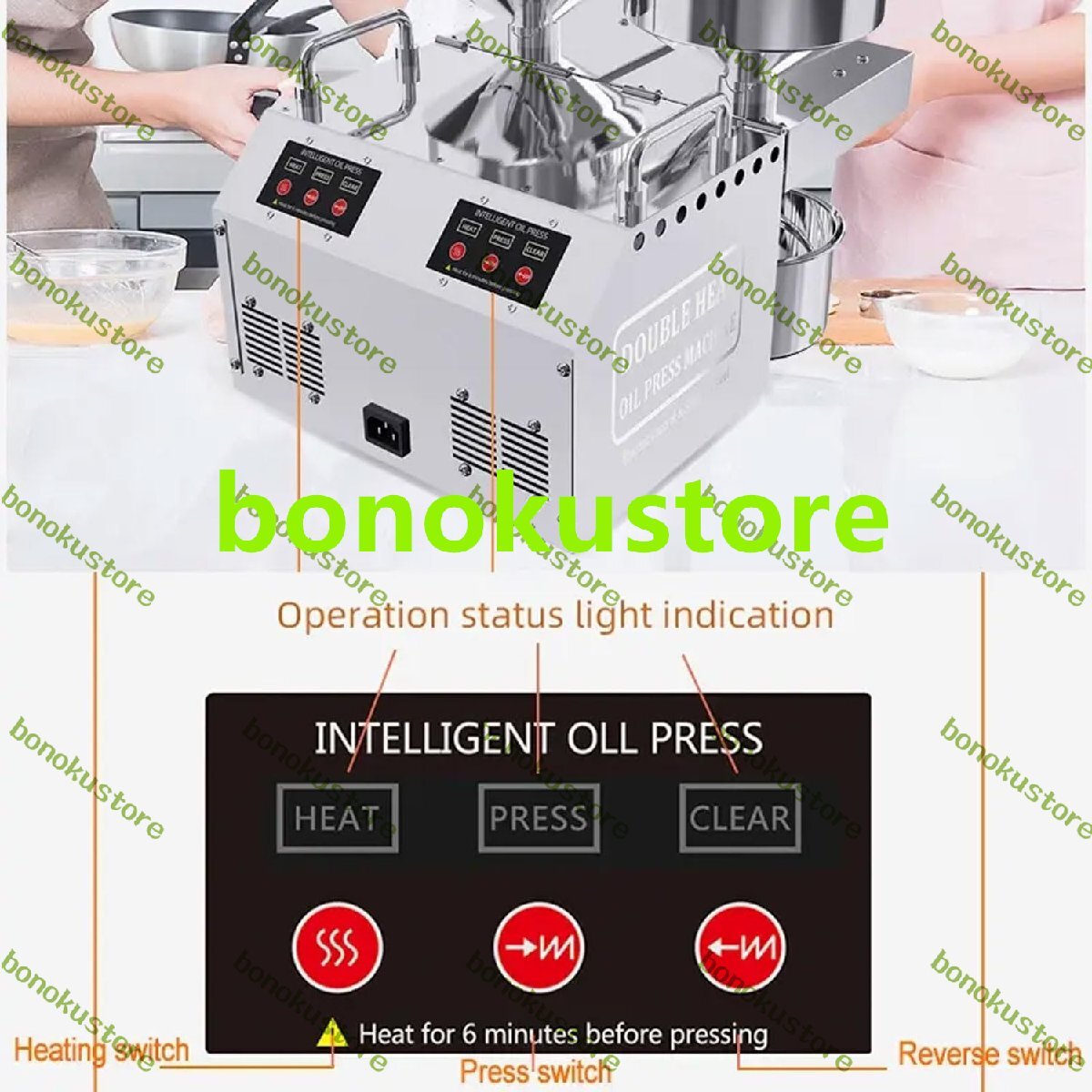 名前: 商業オイルプレス 機械サイズ: 435*275*280MM 定格電力: 1600W モーター出力: 400W 加熱電力: 1200W プレスロッドの長さ: 210MM プレスロッド材質:SS304 時間あたりの生産能力: 8-12KG 電圧:110V/220V 周波数:50-60Hz 機械の正味重量: 12KG