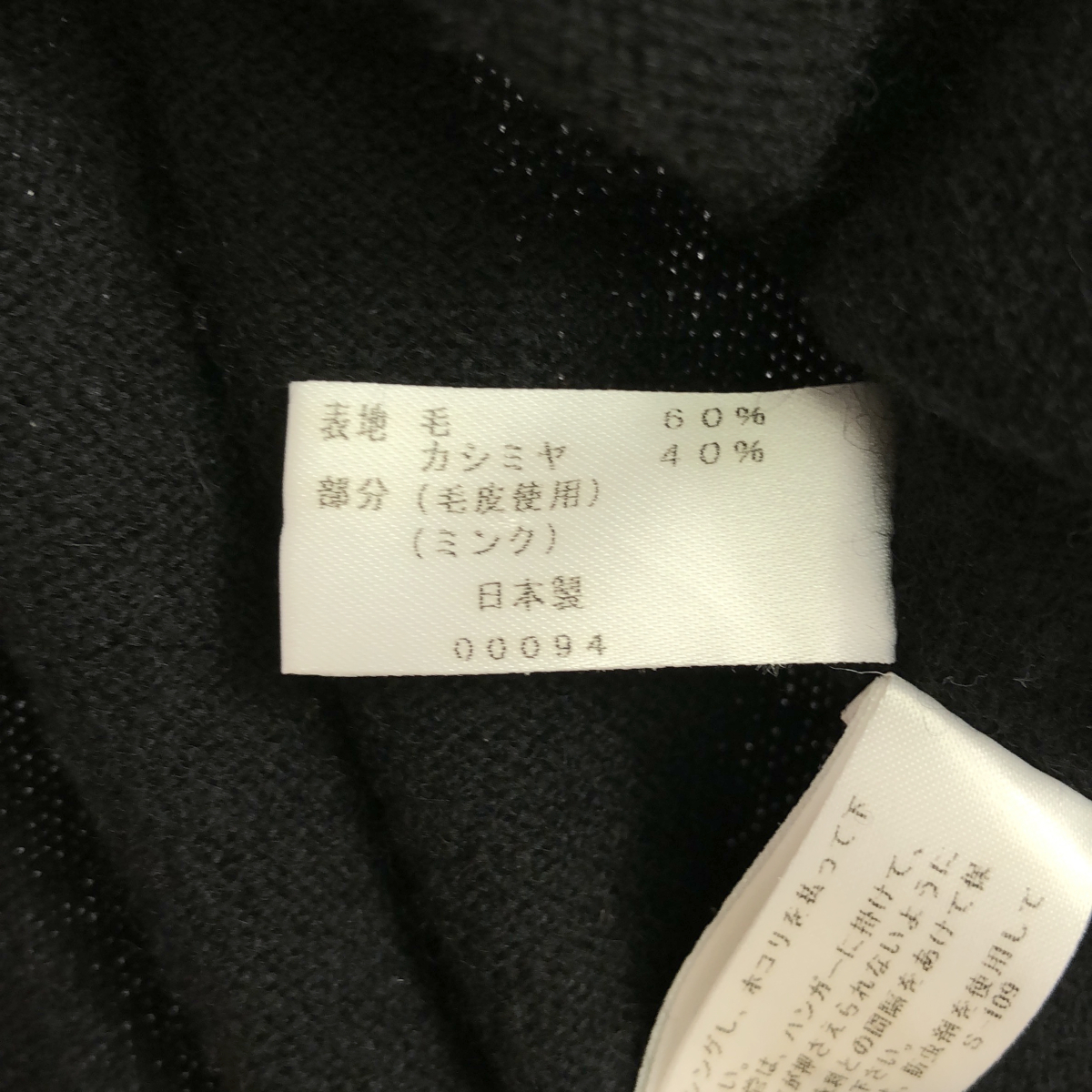 入札前に必ず当店の自己紹介文をお読みください。 落札後、当店からのメールが届かないという事例が多々ある為 予めヤフーオークション登録のアドレスのご確認をお願いします。 オークション終了前に出品物が取り消されたとのご連絡が多数ございます。 当ヤフオクストアのアイテムは店頭併売している物もございます。店頭で販売した物は出品を取り下げますので、 気になるアイテムがございましたらお早めにご入札下さいませ。(あらかじめ商品確保致します) CHLOE COLLECTION 520-45416 秋冬セーター サイズ40 CASHMERE BLEND 3/4 SLEEVE KNIT MINK TRIMING BLACK □商品詳細 【ブランド名】 CHLOE 【型番・品番】 520-45416 【表記サイズ】 40 【実寸サイズ(平置き/ある程度の誤差はご了承下さい)】 肩幅(肩の縫い目間) 35cm 身幅(脇下の縫い目間) 44cm 袖丈(肩の縫い目から袖口) 38cm 裄丈(首回りサイドから袖口) cm 着丈(後ろ襟ぐり中間から裾) 53cm 前身頃(前面 首の縫い目から裾) cm 後身頃(背面 首の縫い目から裾) cm 【メインカラー】 ブラック 【素材】 【店舗コメント】 状態:他繊維に付着が多少あります。目立った汚れやダメージはありません。一般的な中古品とお考え下さい。