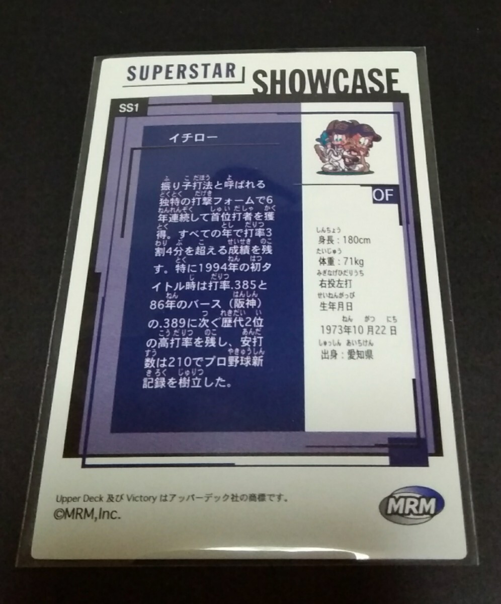 | 商品名稱 : | 2000年upper deck Victory イチロー(オリックス)MRM SHOWCASE SUPERSTAR シルバー No,SS1。※初期跡あり(画像3) |