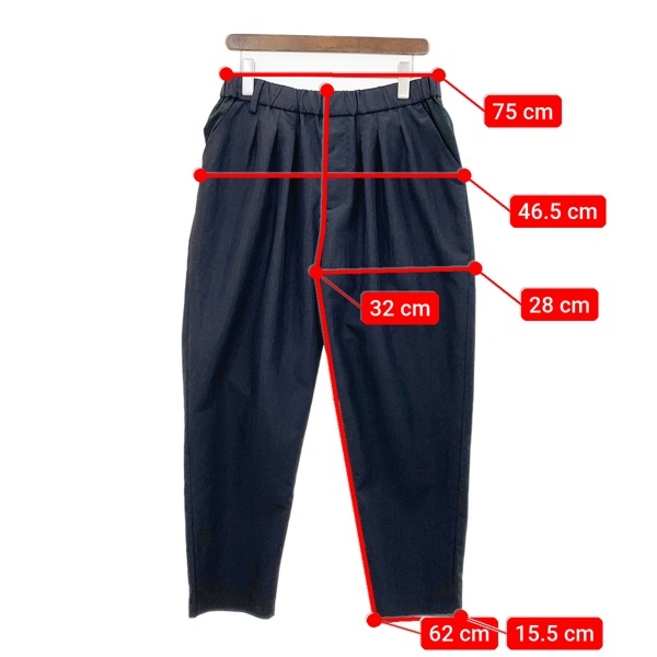 | 実寸法 | ボトムス実寸 ウエスト:75cm 股上:32cm 股下:62cm もも幅:28cm 裾幅:15.5cm |