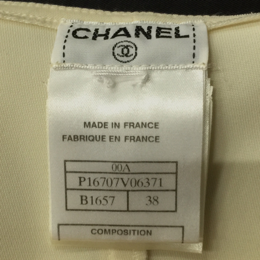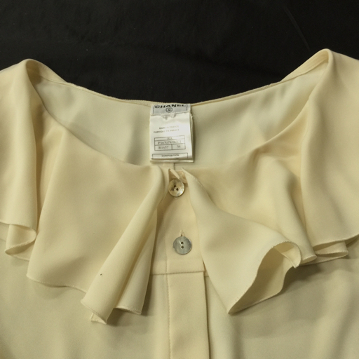 | シャネル 00A サイズ 38 長袖 ケープ フリルブラウス レディース クリームカラー系 フランス製 トップス CHANEL |