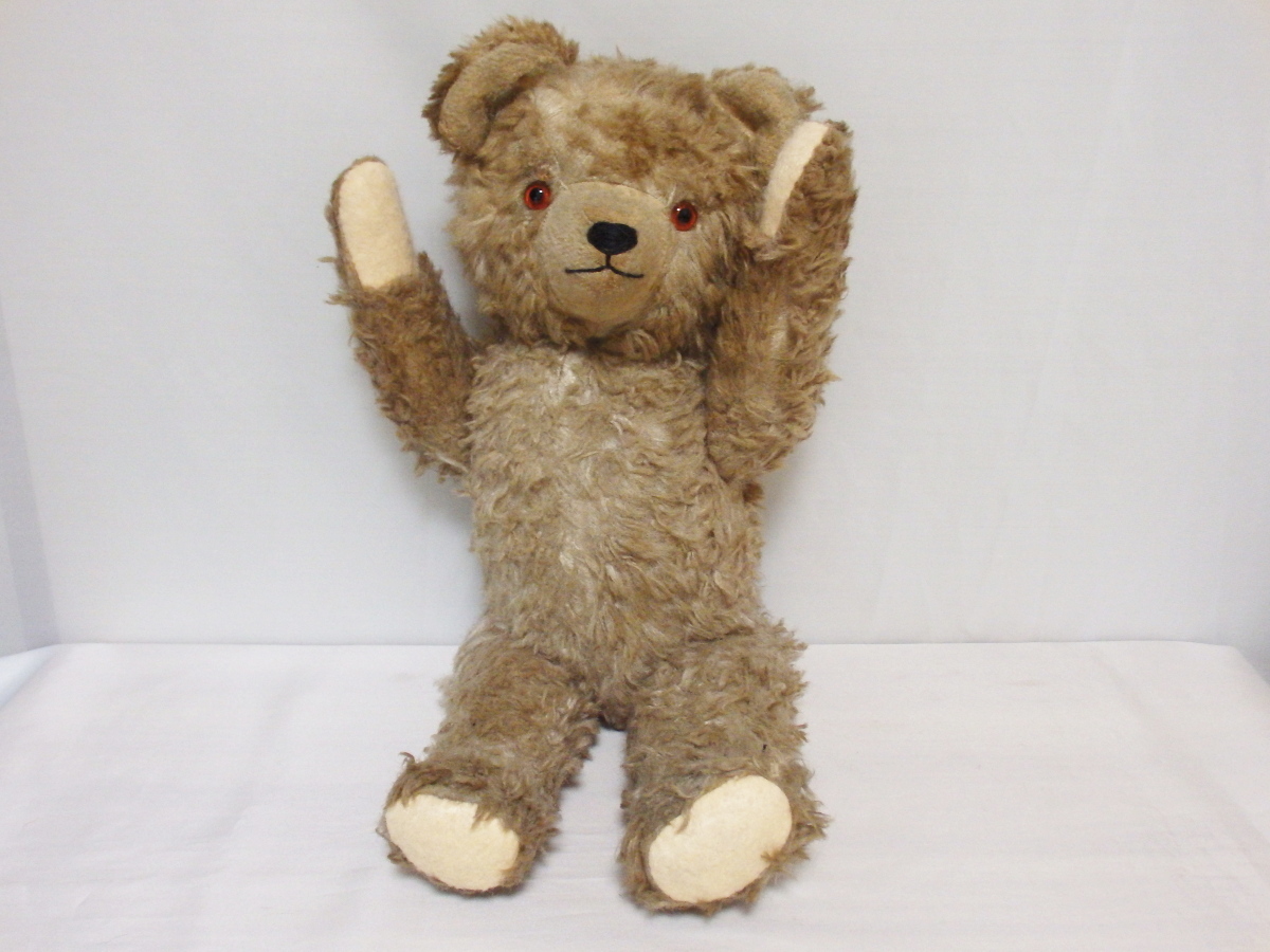 | 商品説明 | ★ドイツ ビンテージ テディベア ★身長約50cm、琥珀色と黒の2色グラスアイ、5ジョイント、詰め物は木毛です。 ◎お腹にグローラーが入っていますが、強め大きく揺らすと、小さく音が鳴る程度で不調です。 ★タグ等が付いていませんので、どこのメーカーなのかはわかりませんが、ドイツで1950年代ごろに作られたテディベアとして譲り受けました。 ★発売より年数の経ったビンテージ品ですので経年のダメージがあります。全体的なくすみ変色薄汚れ毛並みの乱れがあり、年代なりの古ぼけたベアさんです。首のジョイントが少し緩くなっています。年代なりのダメージがありますので、画像をご確認の上ご入札お願いします。年月を経て愛され優しい表情をしたビンテージベアです。(状態の感じ方は個人で違いますので、必ず画像をご確認の上ご入札下さい) ◎商品説明文の後にも画像をたくさん載せてありますので、最後までご確認ください。 素人の撮影のため、色合いなどは画像とは実際に異なることもありますので、ご了承ください。 当方見落あるかもしれませんのでコンディション等は画像をご確認の上、入札をお願いします。(アンティーク品ですので経年によるダメージがありますことご理解できる方のみご入札お願いします) ◎ヤマト運輸・ゆうパックで発送時のみ配達日時の指定が可能です。ご希望の場合は取引メッセージにて事前にご連絡下さい。 お取引での不明点も取引メッセージにてご連絡お願いします。 ◎オークションシステムの変更の為、商品が届きましたら必ず「受取連絡」を押して下さい。 そのままですと、当方にヤフーより入金されないシステムになっております。 どうぞご協力お願いします。 ★以上をご了承の上、画像を確認後、入札下さいますようよろしくお願いいたします。 |