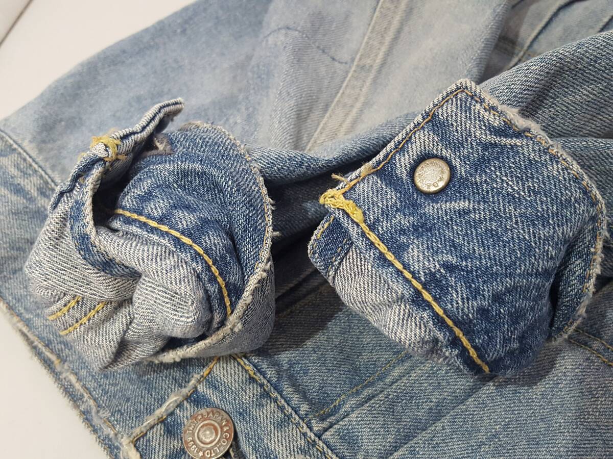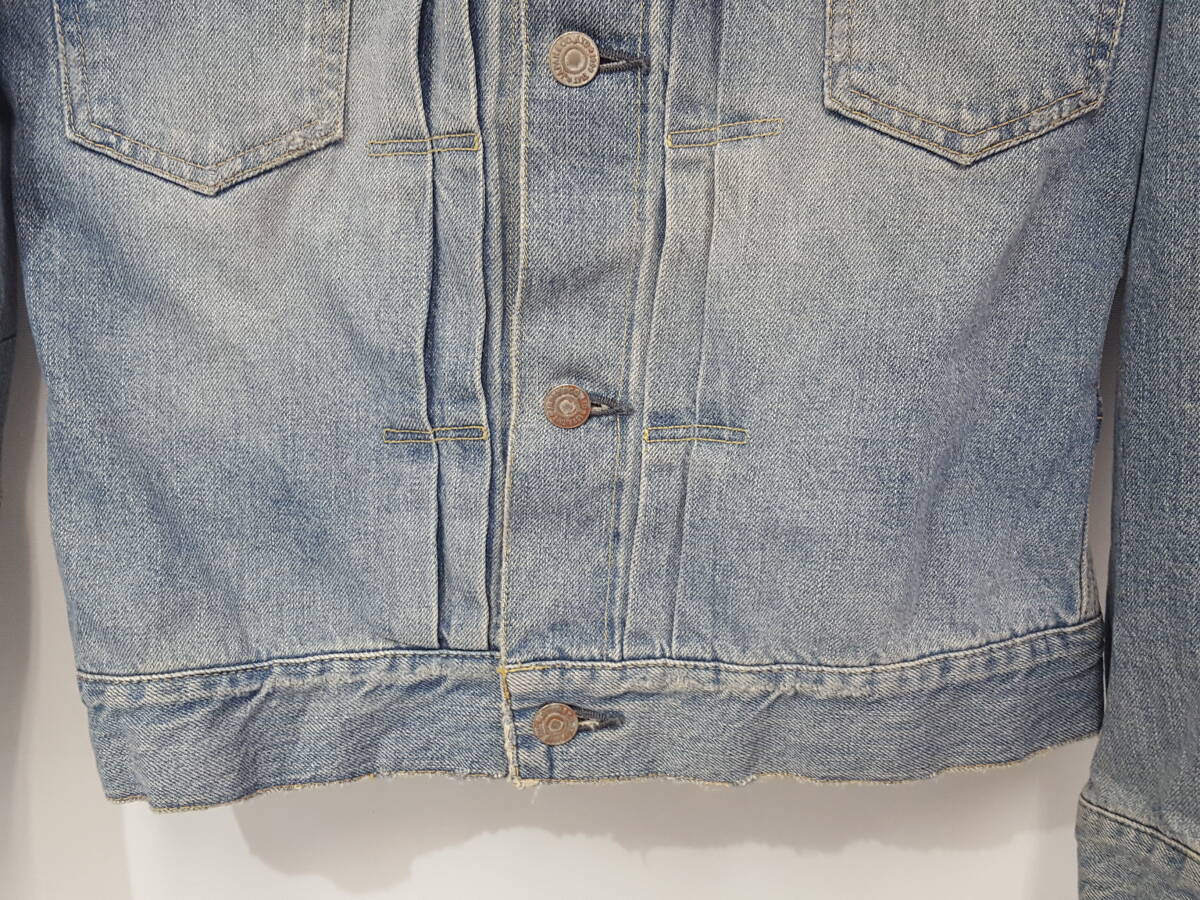 ※離島など別途中継手数料がかかる地域が御座います。 その場合はお振込みを追加でお願いする場合が御座います事、 事前にご了承の程、宜しくお願い致します。 ※送料には業者指定された運送用梱包資材代が含まれます。 専用BOX、段ボール梱包以外での補償は対象外となります。 [商品名] 2,000円スタート 2,000円スタート TMT ティーエムティー ヴィンテージ加工 刺繍入り デニムジャケット [サイズ] XS [平置き寸法] 着丈約60cm, 身幅約46cm, 肩幅約40cm, 袖丈約59cm [素材] 綿100% [カラー] ライトブルー系 [仕様] 外ポケット×2 [状態] 全体に若干のシワ、首回りと袖口に汚れ箇所、 表示タグにスレ、右袖に糸引きが御座いますが、