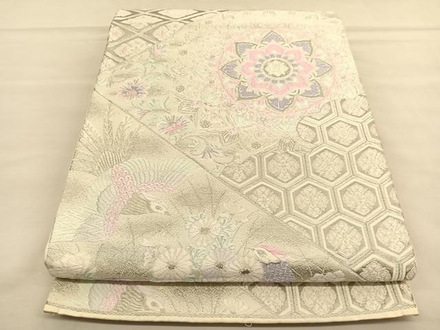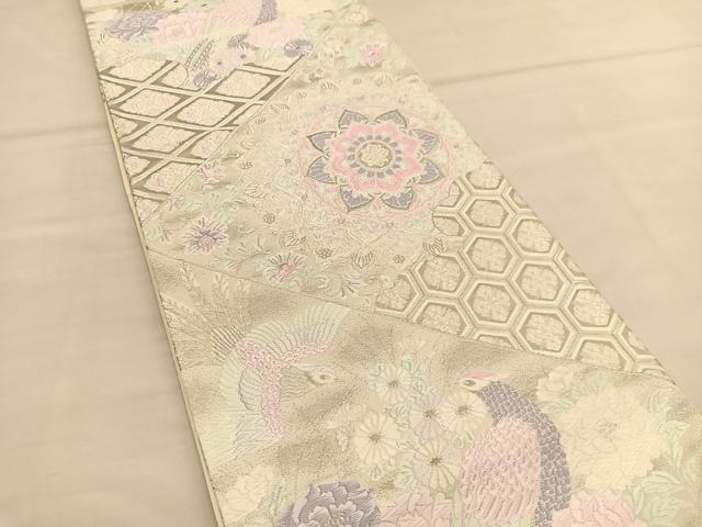 平和屋着物◎六通柄袋帯 唐織 王鳥彩華文 銀糸 正絹 逸品 BAAU1366hv