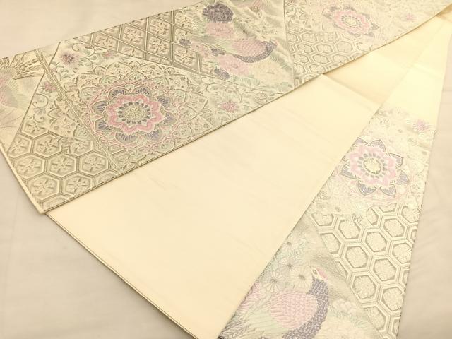 商品名稱 : 平和屋着物◎六通柄袋帯 唐織 王鳥彩華文 銀糸 正絹 逸品 BAAU1366hv