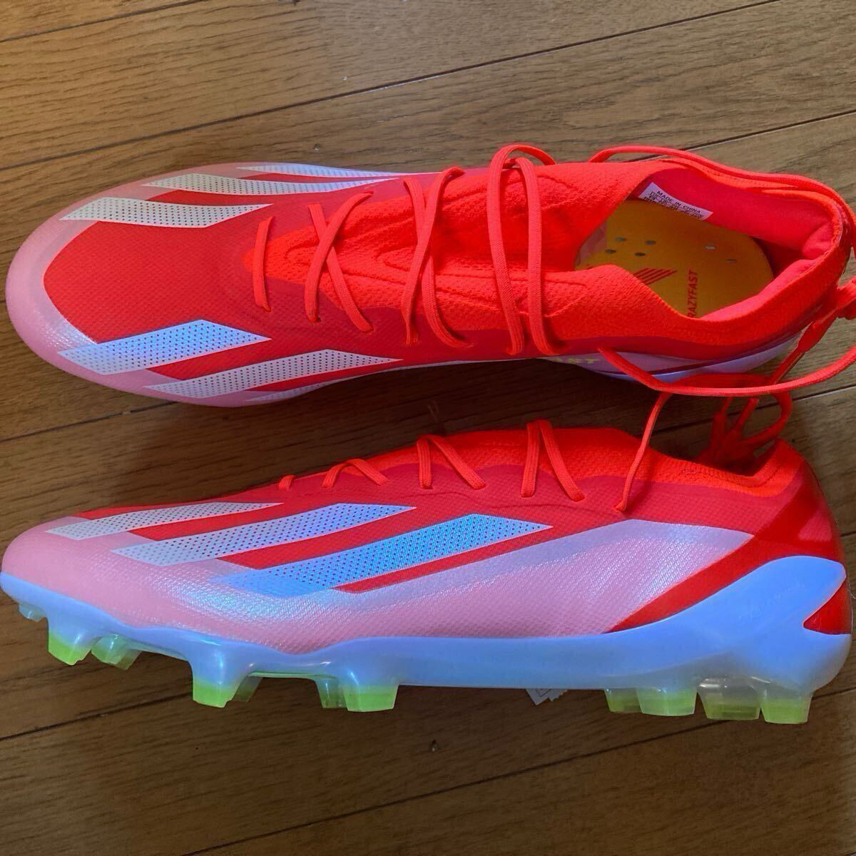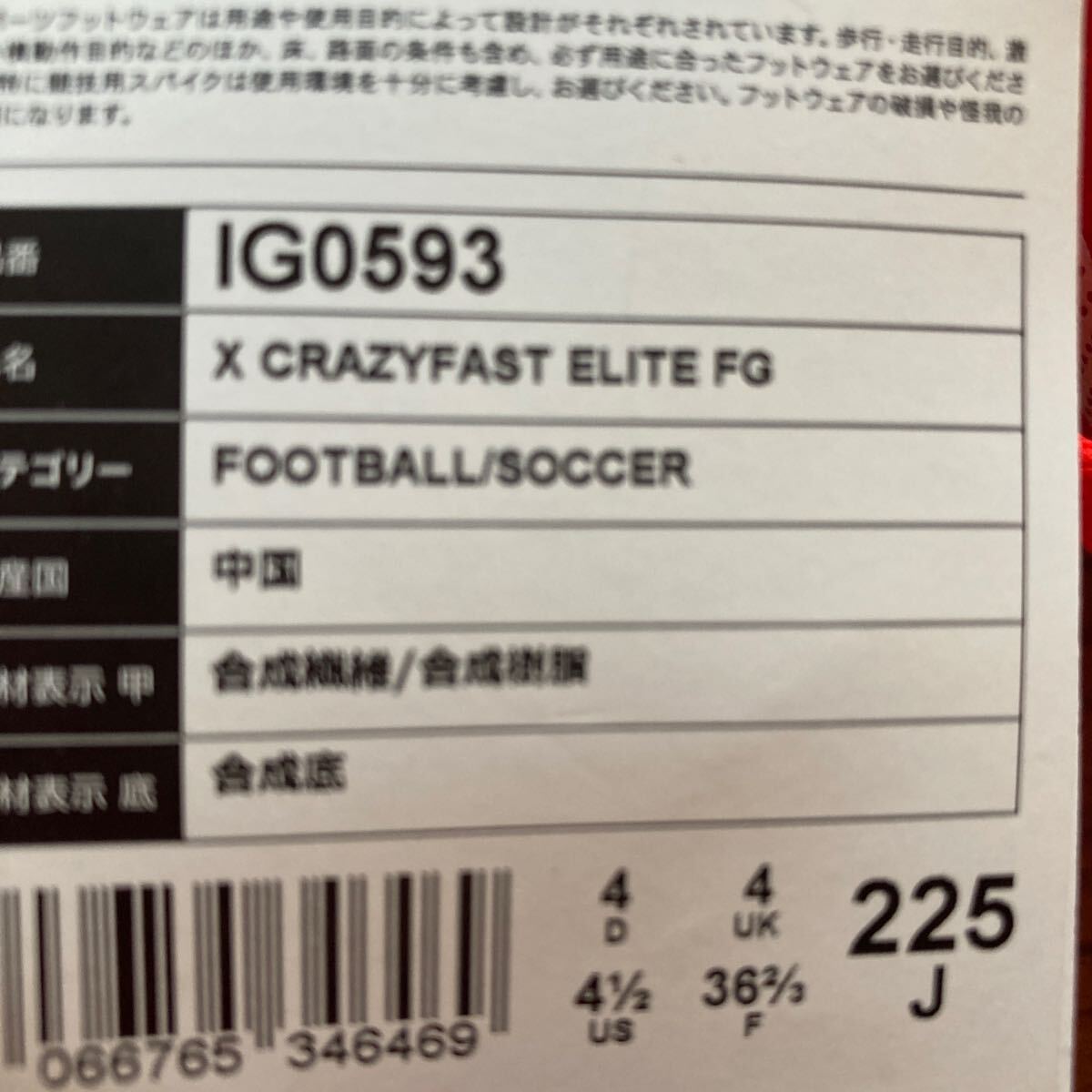 新品、箱なし商品可能無含外箱,確認後在進行下標。 。品番IG0593 アディダス Xクレイジーファスト エリート FG SOLAR ENERGY PACK。急激な方向転換や俊敏なステップワークに必要な“脅威のアジリティ”をもたらす、スピードに特化した「X CRAZYFASTのELITEモデルFG トップモデル。【テクノロジー】半透明の「Aeropacity Speedskin(エアロペーシティ スピードスキン)」アッパー採用。シングルレイヤーのモノメッシュを、2層のTPUフィルムで覆うことで、素足感覚とスパイクの軽量性が向上。足元をしっかりとホールドするアディダスPRIMEKNITの履き口。軽量化とフィット感を両立させるためのカッティングを施したライニング素材「Aerocage(エアロケージ)」が、理想的な安定性を高める。バイオベースのポリアミドでできた高反発の軽量素材で、軽量化と前足部の屈曲性を実現することで、プレーヤーの爆発的な推進力と加速度をサポートする「Aeroplate(エアロプレート)」。さらに、スピードフレームが安定感を高めてくれる。天然芝グラウンド用