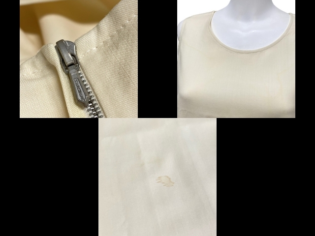 商品説明 ブランド:HERMES(エルメス) コンディションレベル:【5】使用感あり 表記サイズ:38 商品詳細 ジャンル:ワンピース 商品名:マルジェラ期 デザイン:ノースリーブ/ロング/シルク混/セール品 カラー:アイボリー 素材:【表地】ウール、シルク 男女別:レディース 付属品:なしカラーについて 素材について 付属品について 実寸サイズ 身幅 : 約 45 cm 着丈 : 約 104 cm コンディションの備考 【外側】 ・全体的 ⇒ 汚れ / シワ / シミ(汗シミ(変色あり)あり/脇下ぶ目立つ/バスト下部分に大きなシミ若干/小さなシミも多数あり) ・フロント ⇒ 金具不具合(バック部分) 【内側】 ・全体的 ⇒ 汚れ / シミ(汗染み(変色)目立つ/バスト下) ・首周り ⇒ ほつれ(破れ)(タグ部分) 【特記事項】 ・本体 ⇒ ニオイ