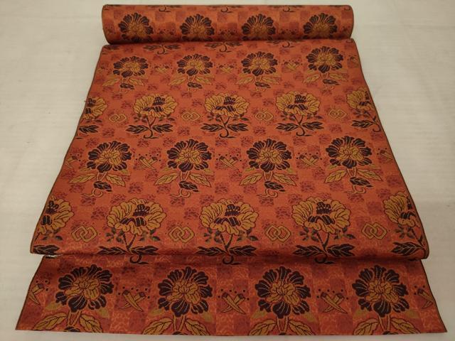 平和屋着物▼西陣 名古屋帯 反物 草花文 正絹 逸品 未使用 AAAY1310ru