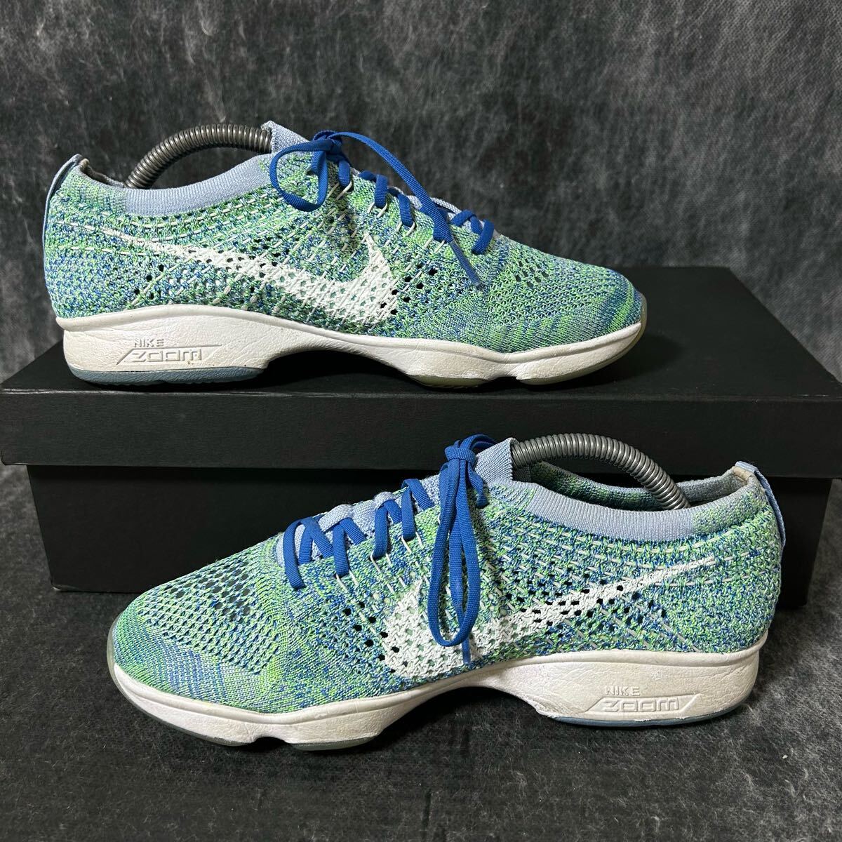 NIKE FLYKNIT ZOOM AGILITY ナイキ フライニット ズーム アジリティ ランニングシューズ ジョギング 24cm グリーン ブルー *110