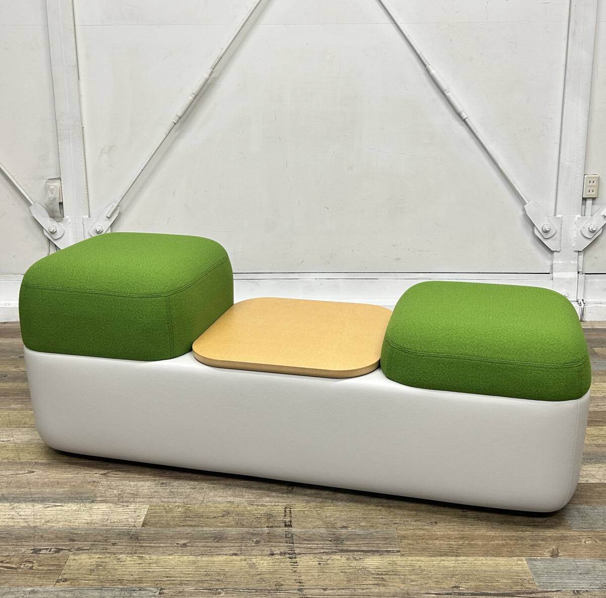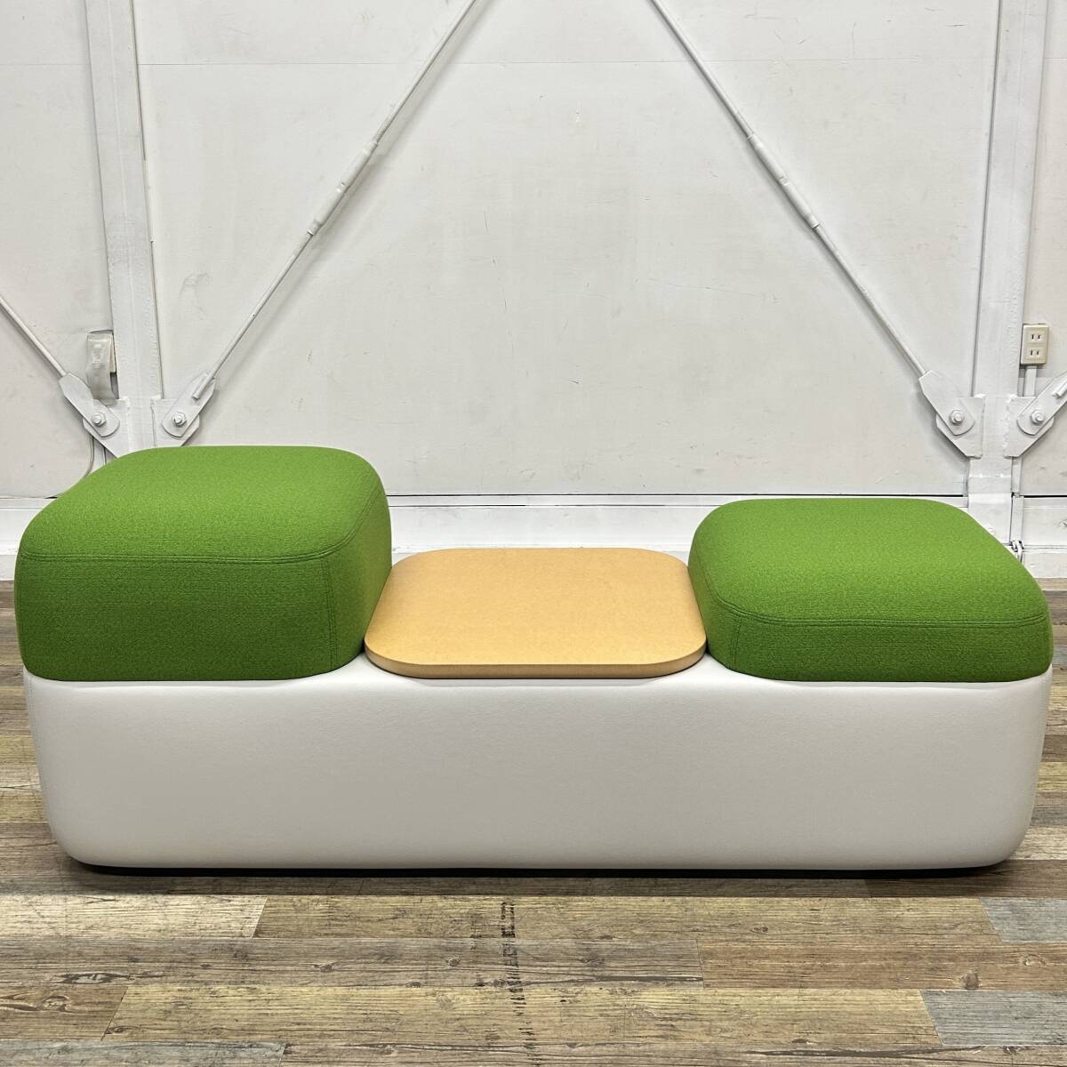 商品説明 [ サイズ ] ・本体:W1350×D450×H515[mm] [ 材質 ] ・座部:クッション ・テーブル:MDF ・本体下部:ビニールレザー [ カラー ] ・座部:ファイングリーン ・テーブル:ナチュラル ・本体下部:シルバーグレイ 内田洋行のラウンジ向け家具、nonnette(ノネット)のベンチです。 3連STM仕様で両サイドには高さの違うシートが、センターにはミニテーブルがあります。 ※未使用ですが、展示品となっております。若干の傷や汚れがある可能性がございますので、細かい所まで気になる方、神経質な方はご遠慮ください。 商品はクリーニング後に発送します。 ※照明や御使用端末の環境により多少画像の表示色と実物の色に差違が生じる場合がございますのでご了承ください。 ※メーカー保証はございません。製品の詳しい仕様に関しましては、メーカーHPにてご確認ください。 ※ご購入後に発送伝票にお電話番号を記載する為、お客様に確認させて頂くことがございます。 ※沖縄、離島は対応しておりません。