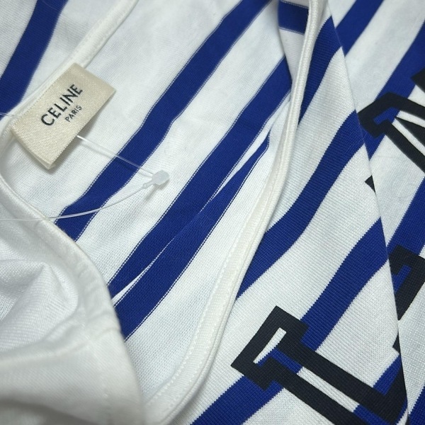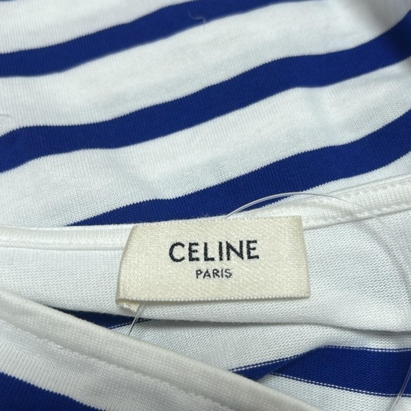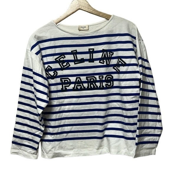 セリーヌ CELINE 長袖カットソー サイズXS - 白×ブルー×黒 レディース クルーネック/ボーダー トップス