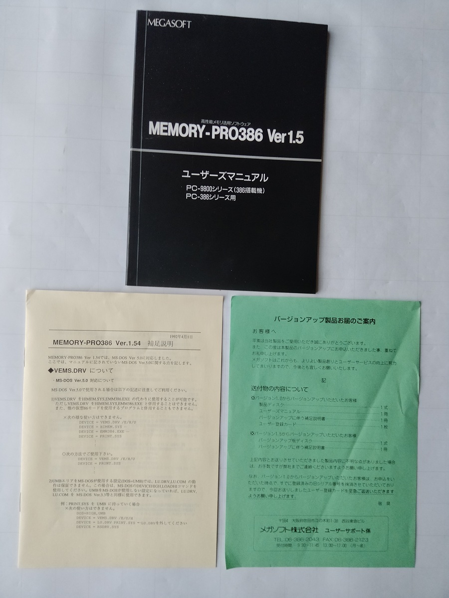 | 商品名稱 : | MEMORY-PRO386 Ver1.5 メガソフト |