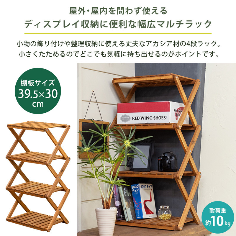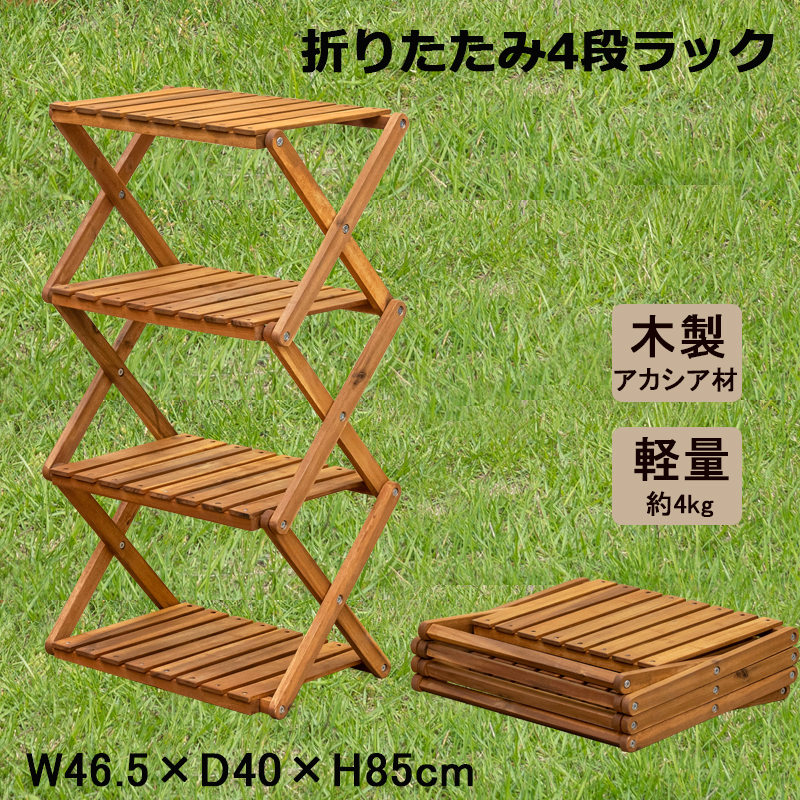 | 商品名稱 : | オープンラック 折りたたみ 棚4段 ラック 木製 46.5cm幅 アカシア材 UNL-24 アウトドアにも 補助台 置き台 収納 |