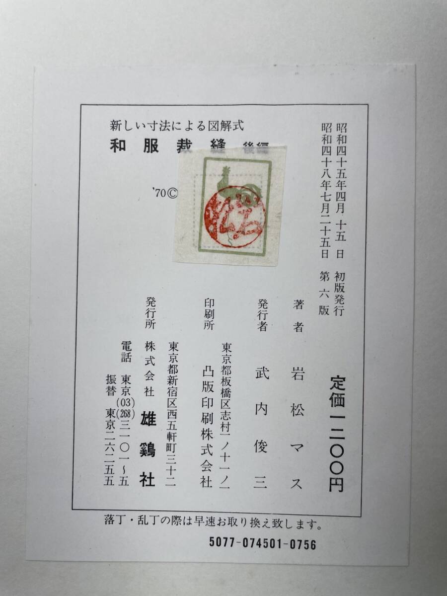 | 商品名稱 : | 和服裁縫 後編 岩松マス著 昭和48年 1973年発行【K179450】 |