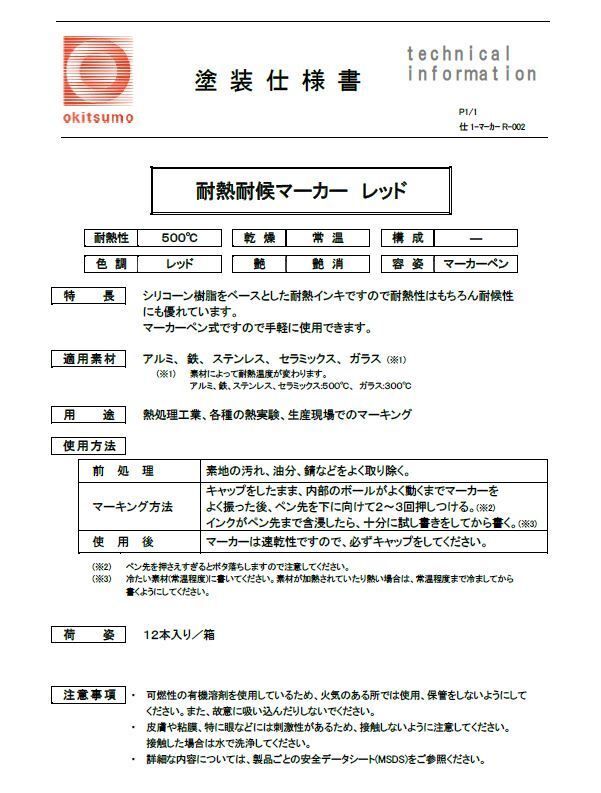 【 オキツモ 耐熱耐候マーカー  レッド/500℃ 】