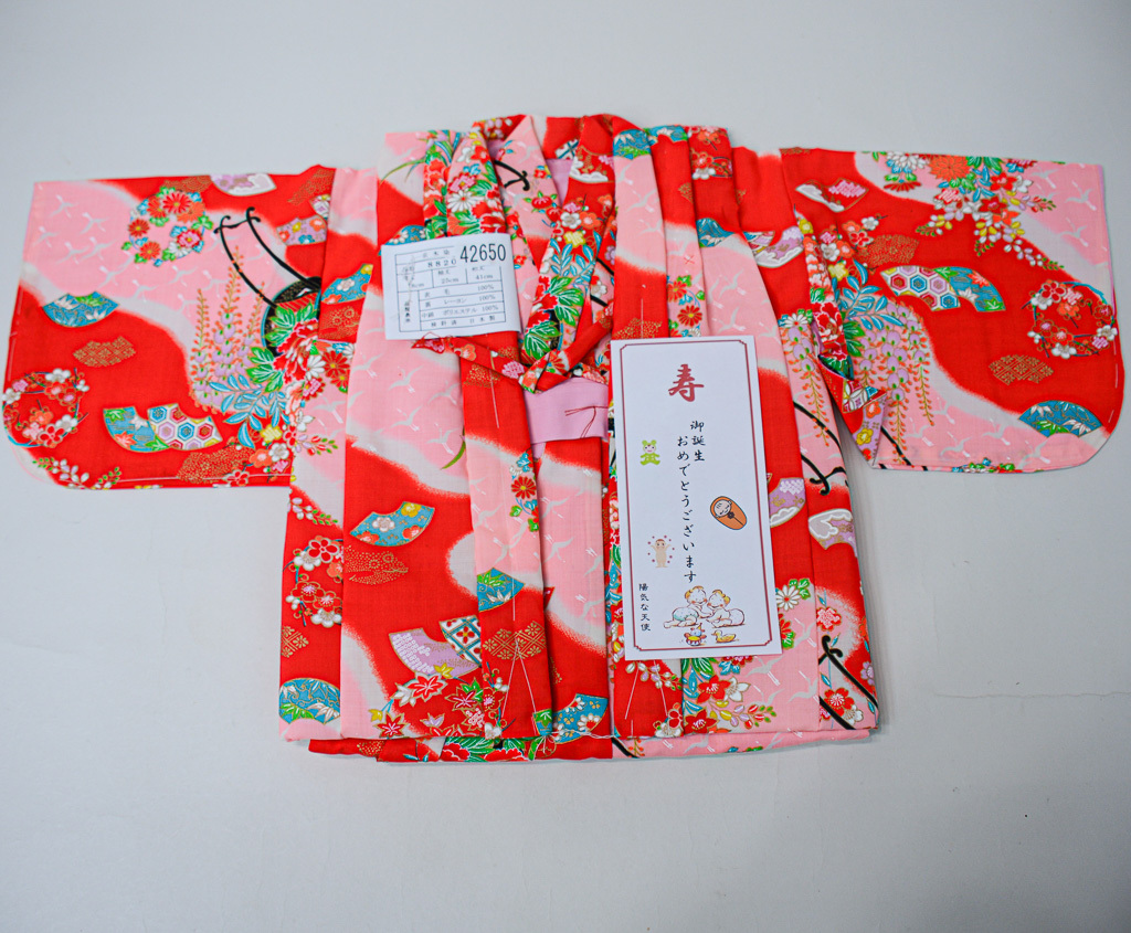 | サイズ | 身丈78cm、裄丈41cm、袖丈25cm(フリーサイズ) ※0歳~2歳くらいまで着用できます。 |