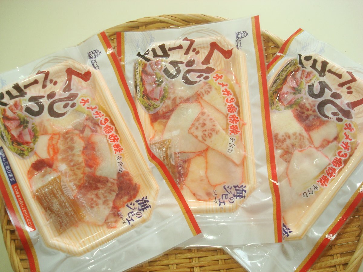 ☆写真は全部50gです。お皿に盛った鯨ベーコンも50g(1パック)です。