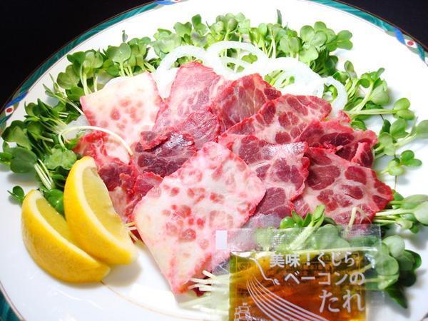 品名:ナガス鯨肉ベーコン(さくら盛り、タレ付き)
