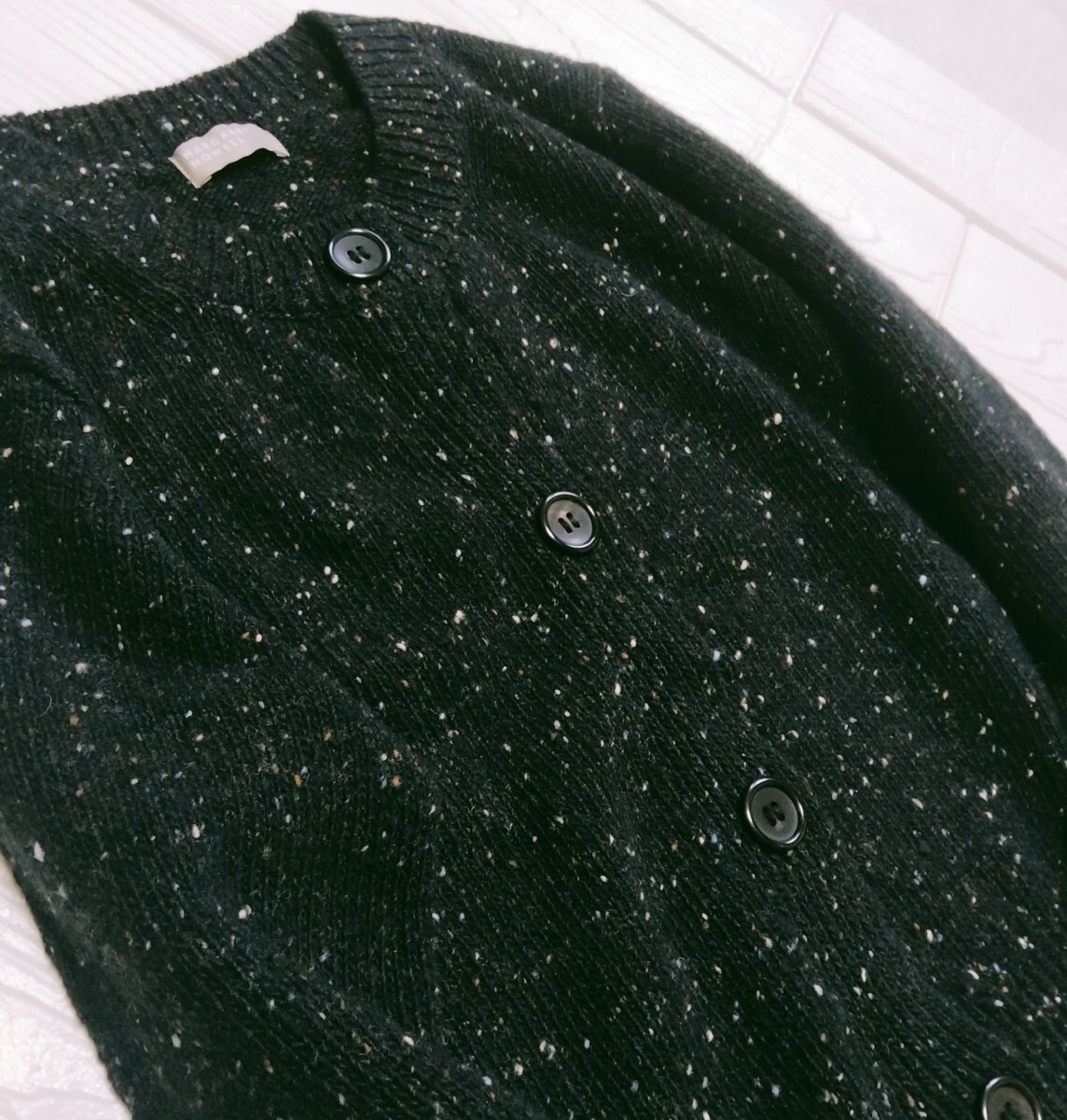 身幅が広く、着丈の短いボクシーなシルエットのカーディガンです。 首元は太めなリブが特徴的なクルーネック。
