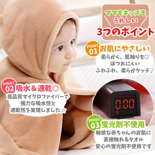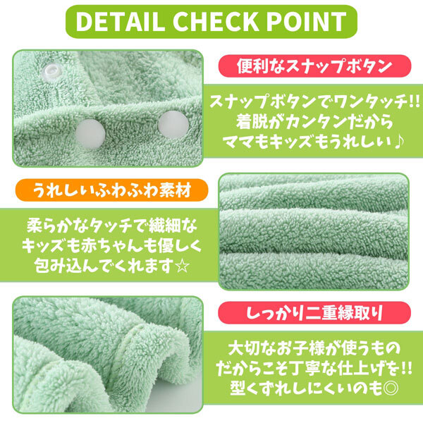 | 内 容 | ■キッズ アニマルフードブランケット タオル ラビット ■サイズ:70(約縦70×横140cm) ■素材:ポリエステル82%ナイロン18% ■カラー:パープル 可愛くてユニークな動物モチーフがデザインされた 子供用フード付きタオル。 フードをかぶると可愛い動物に早変わり♪ 極上の柔らかさとすぐれた吸収力。 さっと羽織れるのでバスタイムやプールで大活躍間違いなし! 毎日のお風呂も楽しくなりますね。 湯上りに簡単に使えるポンチョタイプ! ふわふわのマイクロファイバー生地は吸水性・速乾性に優れています。 フード付きのタオルは子供も大好き! |