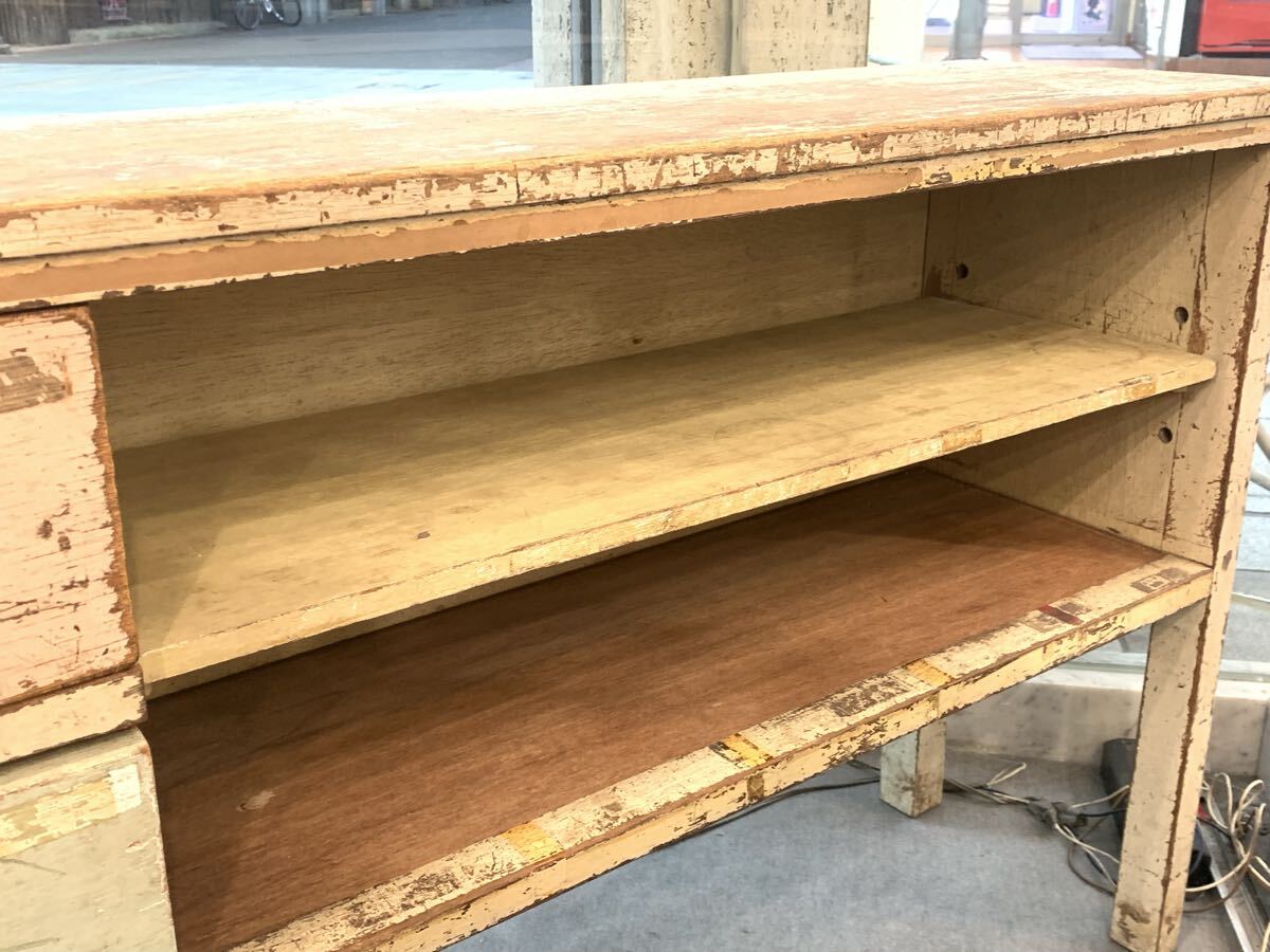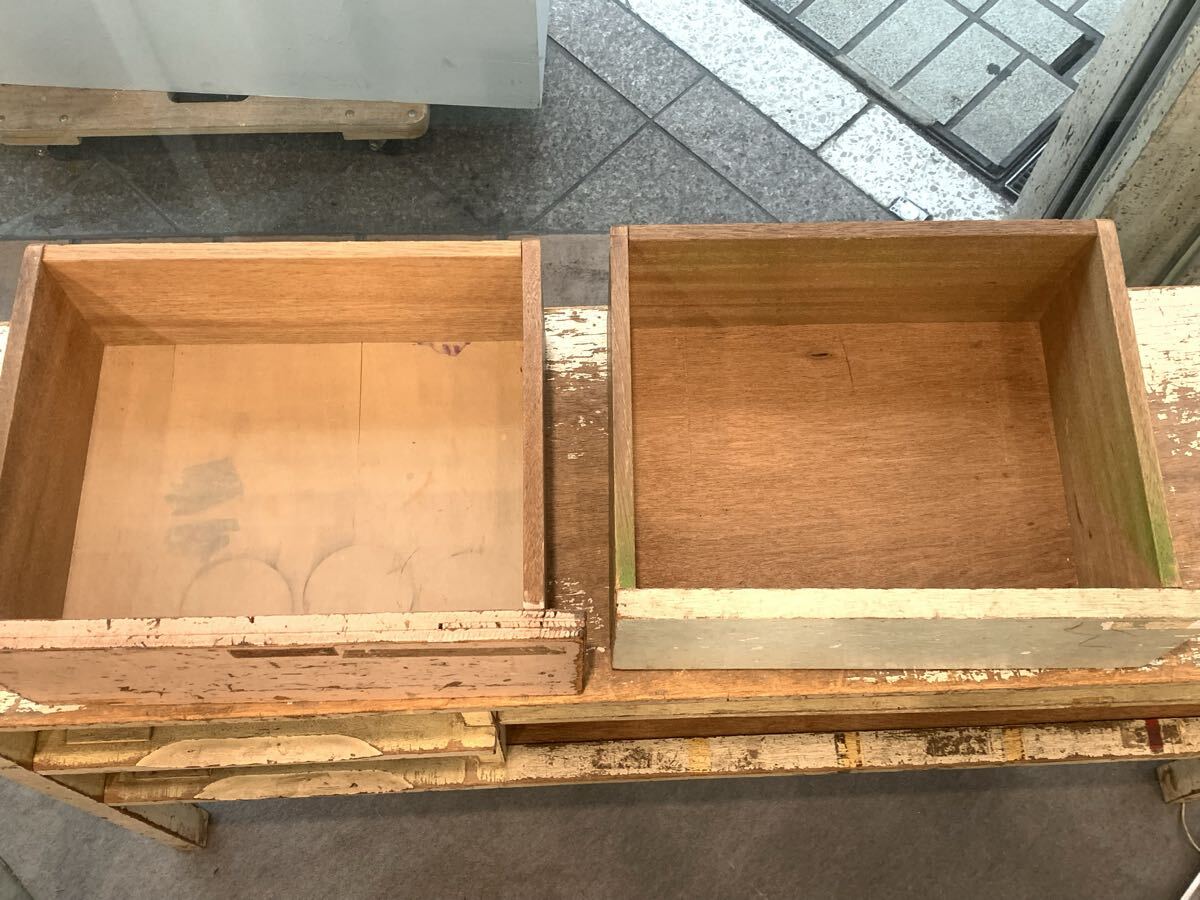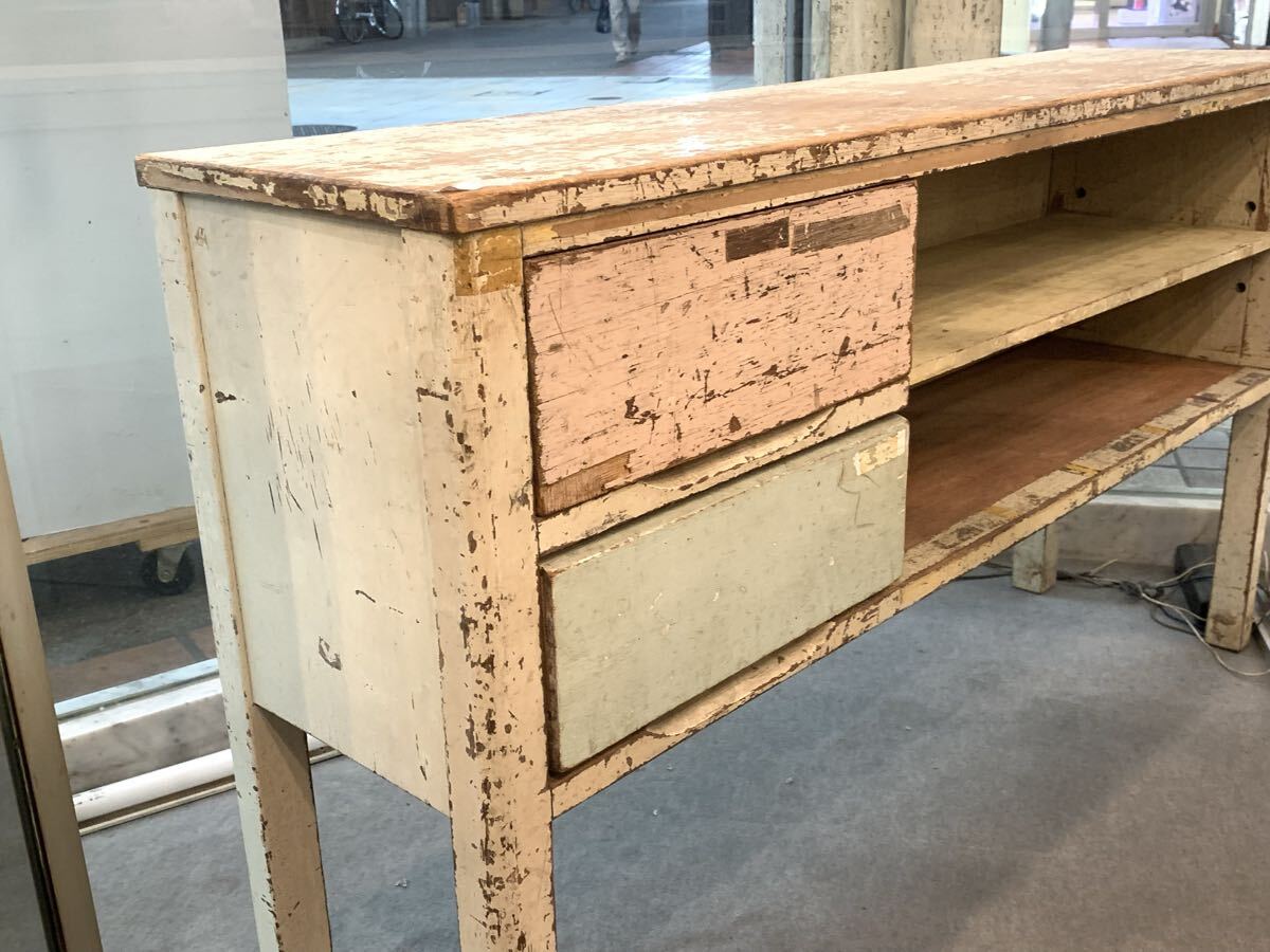 【商品紹介】 歴史ある学校で長く活躍した木製横長テーブルです。 使い込まれた経年の風合いが光ります。 テーブルや作業台、お店の陳列台や展示台にいかがでしょうか? 【状態】 ※状態は画像でご確認ください。 古い物です。キズ・汚れがございます。 気になる程の大きな破損はございません。 天板を横に揺らすと軽いぐらつきがございます。 棚板表面は経年による剥がれが一部みられます。(画像6、7) 2名以上で運べる重量かと思います。 【サイズ】 ※ 掲載期間が切れたので写真を撮り直しました 高さ:70.0cm 横幅:122.0cm 奥行:31.0cm 【送料】アートセッティングデリバリー:Dランク 送料検索サイトはこちら (※発送元は岐阜県です) https://form.008008.jp/mitumori/SKZI1100Action_doInit.action?_gl=1*ckmqyu*_gcl_au*NTI2ODU1NjIxLjE3NTUxNDIyMjI.&_ga=2.4358646.49850404.1756254171-2079918609.1738471288" ※店頭での引き取り商品有可能只能自取,自取費用相當高,請查看頁面確認 大歓迎です!! ---------------------------------------------------------------------------------- 【注意事項】 . ※ご入札前にご確認ください。 ・出品中の商品は古いものです。 簡単な清掃済みですが、傷 シミ 古いもの特有の臭いのある物もございます。 古い物にご理解のある方のみ、ご入札ください。 ・神経質な方や新品同様を求める方の入札はご遠慮ください。 ・撮影状況などにより実際の色と異なる場合がございますのでご了承ください。 ・ご入札の際は、必ず商品の状態を画像でご覧頂いた後 ご納得の上でお願いいたします。 ・商品以外の物はディスプレイですので付属いたしません。 ・ジャンク故障品、問題商品、可能無法修理,請注意 商品及びジャンク故障品、問題商品、可能無法修理,請注意 扱い商品につきましては 返品、交換は一切お受けできませんのでご理解の上でご入札お願いいたします。 上記の内容をご納得頂き入札をお願いいたします。 【店頭での受け取りに関して】 落札いただいた商品を、店頭で直接お渡し大歓迎です! . >
