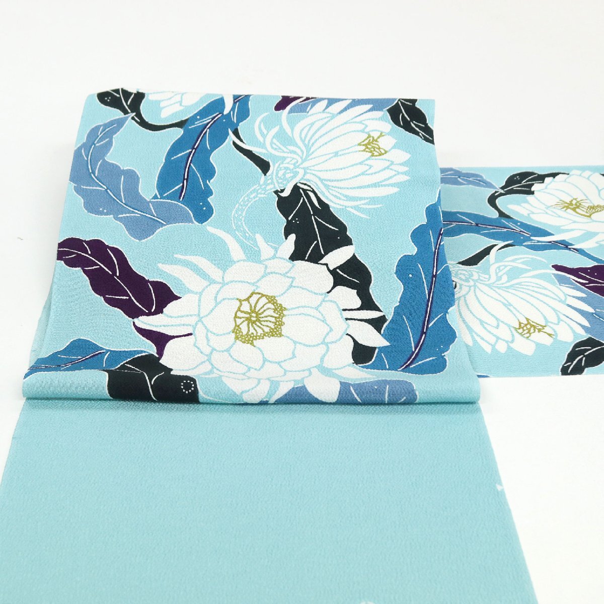全体には一晩しか花を咲かせないといわれる月下美人の可憐な花が白く染め抜かれております。
