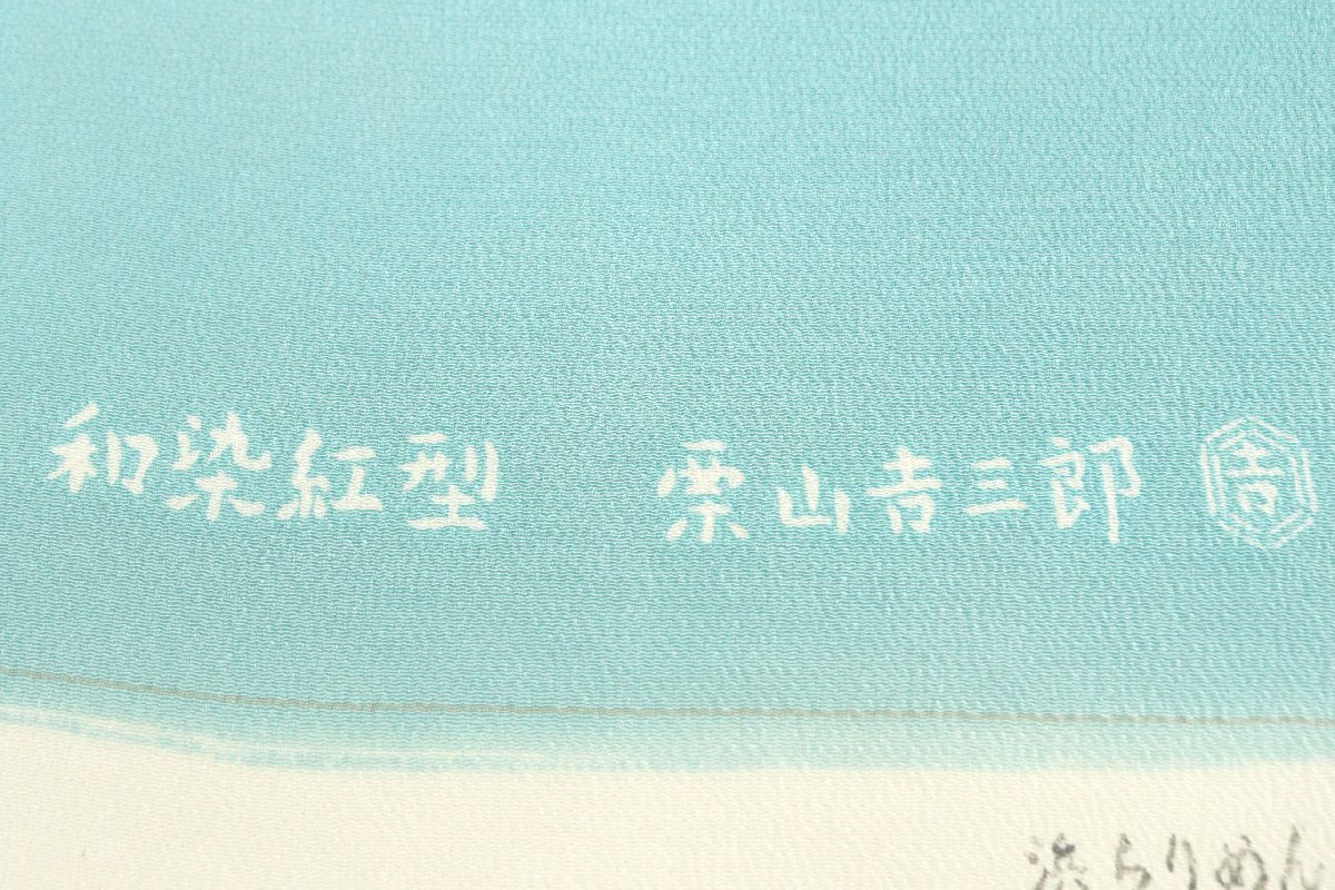 「栗山吉三郎」氏による、浜縮緬和染紅型九寸なごや帯(全通柄で、彩色はお太鼓柄)をご紹介致します。