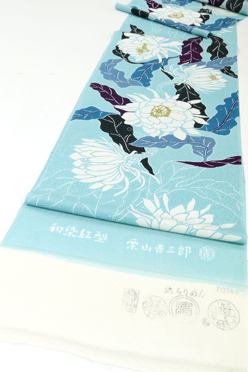 和遊館 ONK2715 栗山吉三郎 浜ちりめん 和染 紅型 九寸 名古屋帯 月下美人