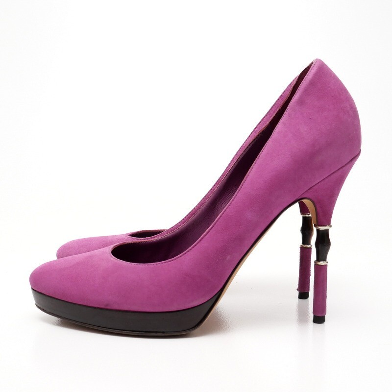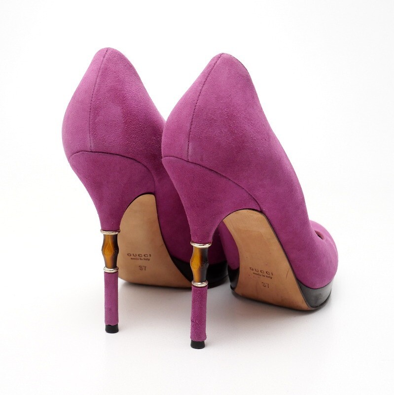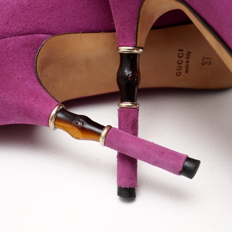 | MI2511*イタリア製 GUCCI グッチ Size 37 バンブー装飾 スエードレザー パンプス 靴 パープル | |||
