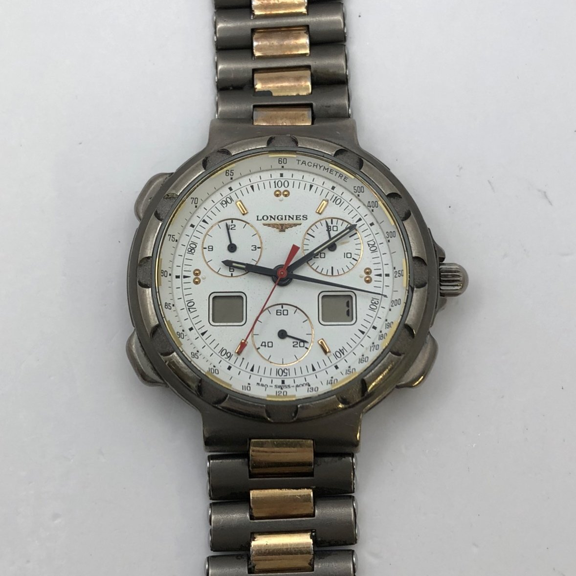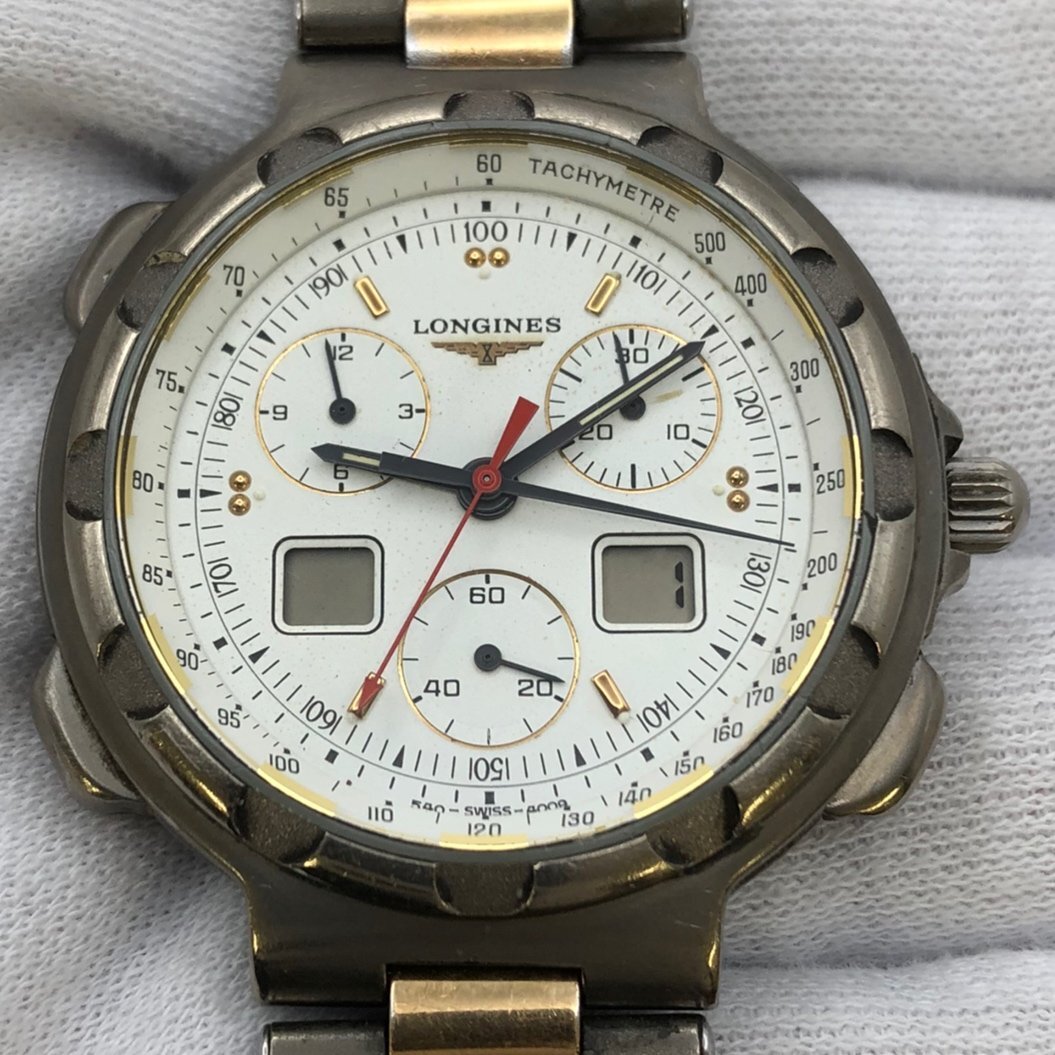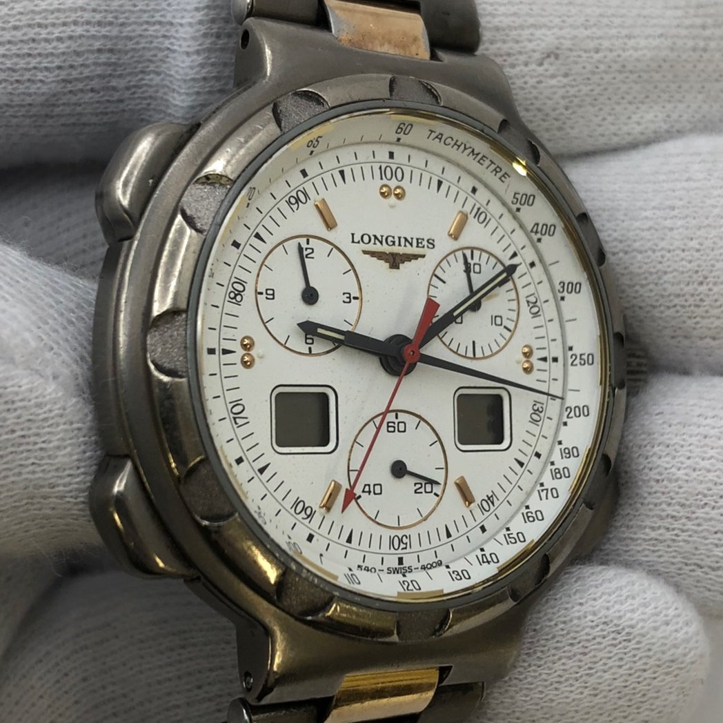 1円~/LONGINES/ロンジン/Conquest/コンクエスト/4009/クロノグラフ/デジアナ/デイト/チタニウム/クォーツ/腕時計/難あり/ジャンク故障品、問題商品、可能無法修理,請注意 /S144