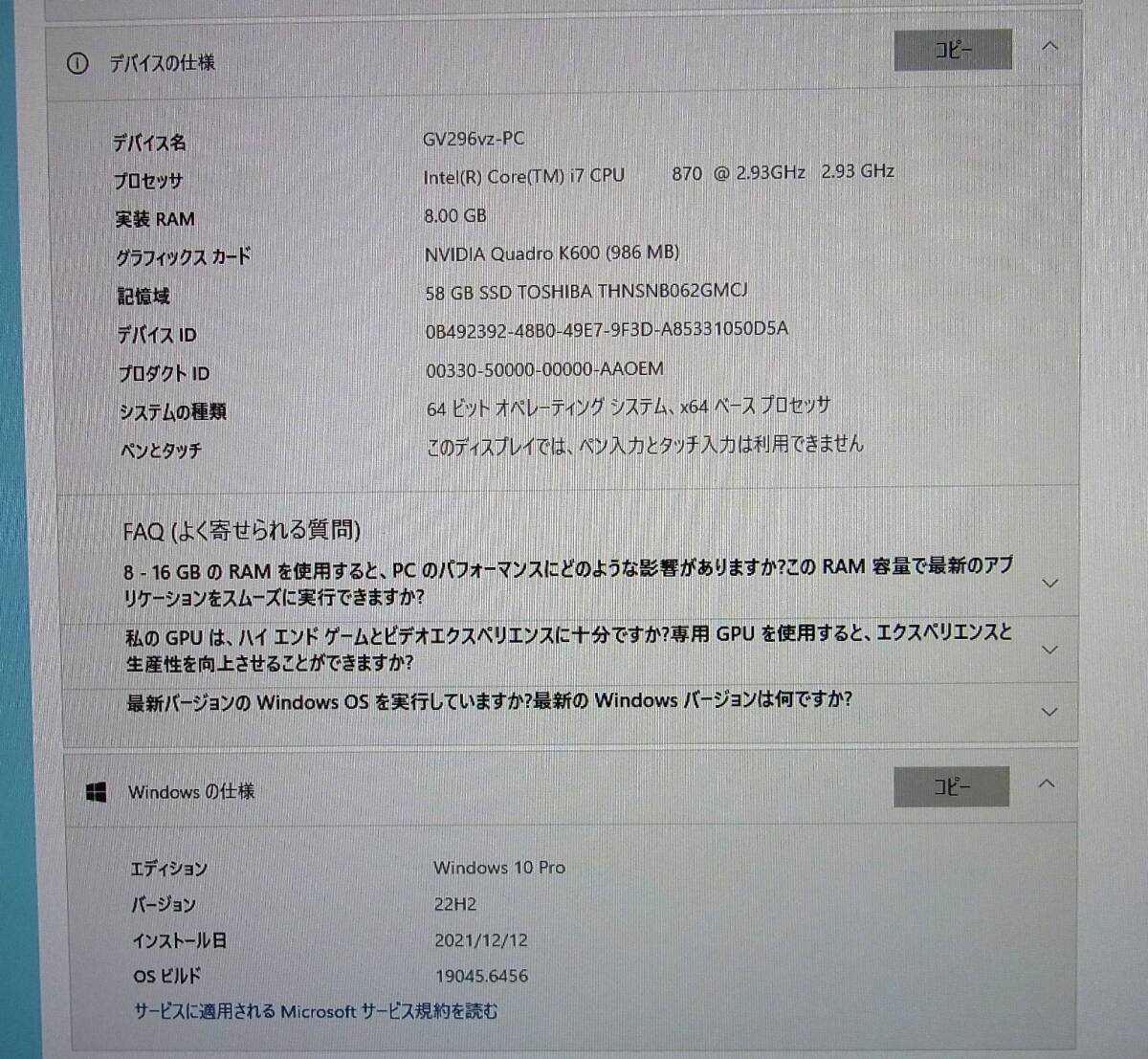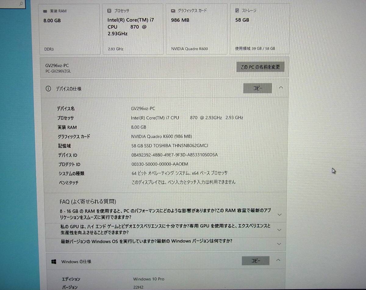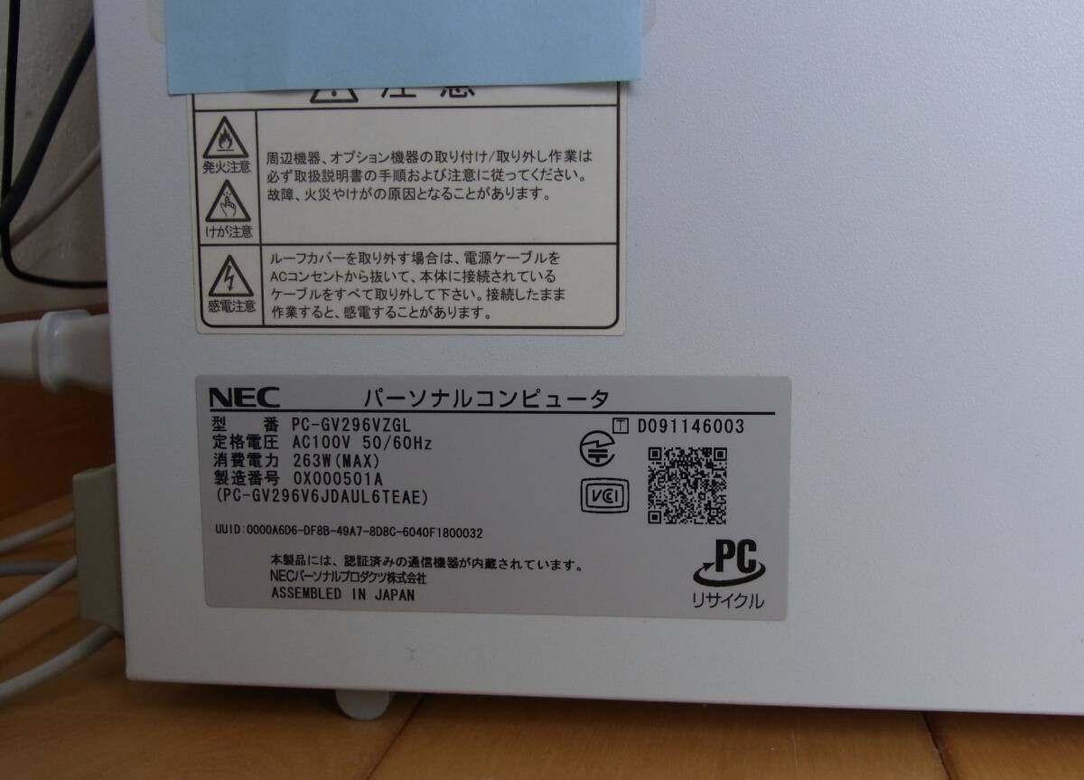 【まだまだ使えます】【価格下げました】NEC PC-GV296VZGL 一部改変 Windows10 Pro 22H2