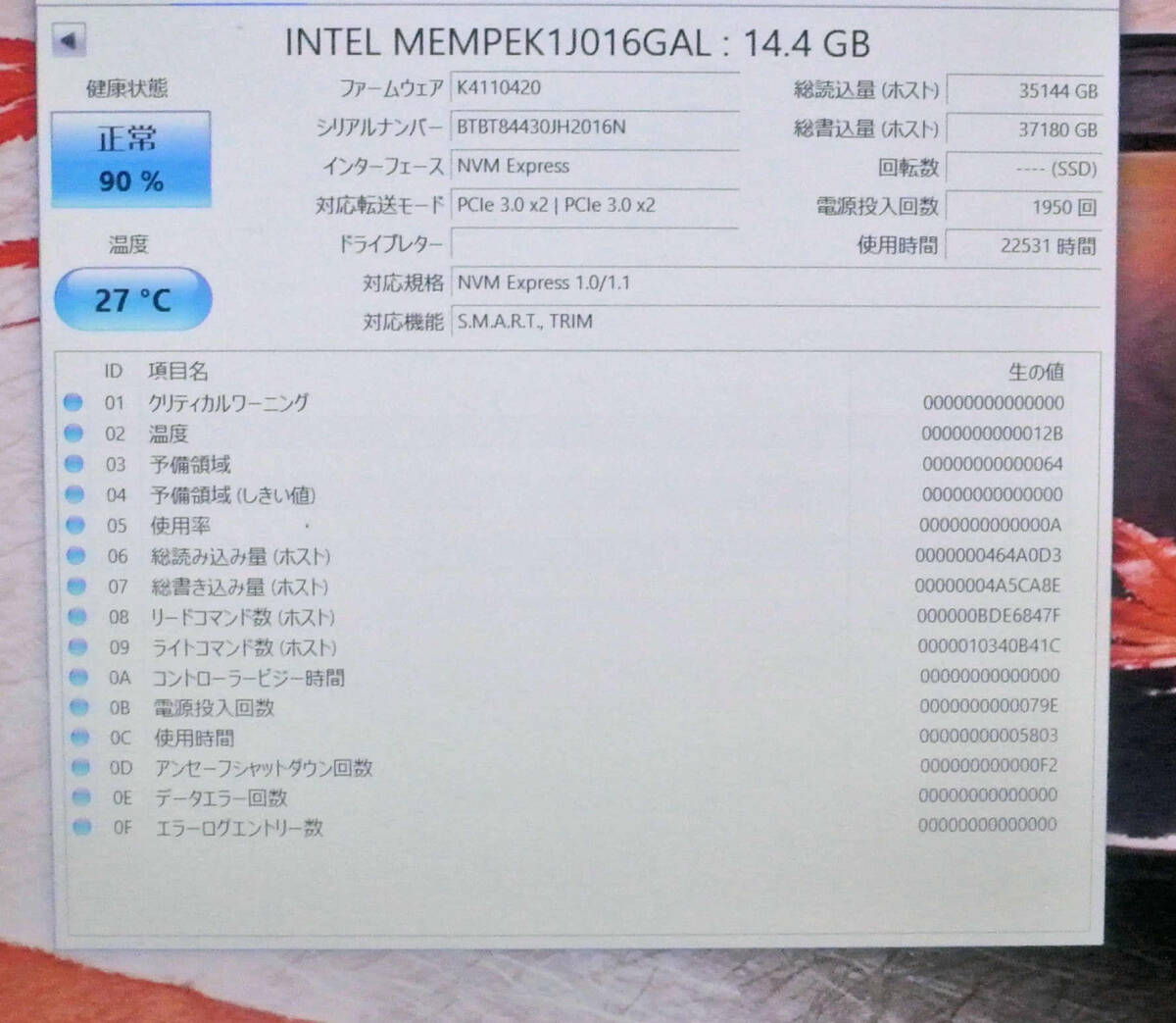 INTEL OPTANE MEMORY M10 16GB MEMPEK1J016GAL 1枚