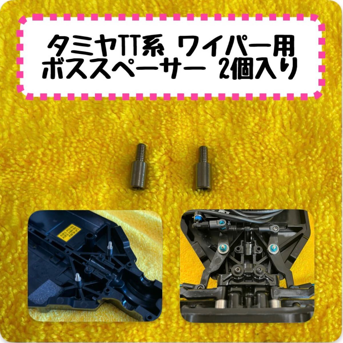 タミヤ TT01やTT02などの、TT系ドリフト用ワイパー(他社製)向けのボススペーサーになります高精度スペーサーによりガタの低減が行えます(取付画像通りに上面からゆるみ止め付きのM3ナットで締め付けてください)