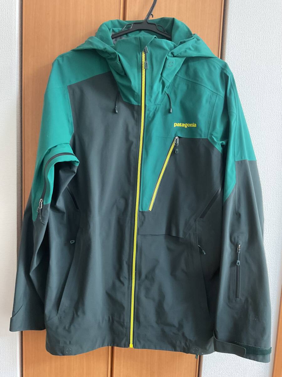 カラーはパタゴニア表記で「レジェンドグリーン」ですが、切替の下は「カーボン」(実際はダークグリーン系)の2トーンです。ゲレンデで映えるカラーリングです。