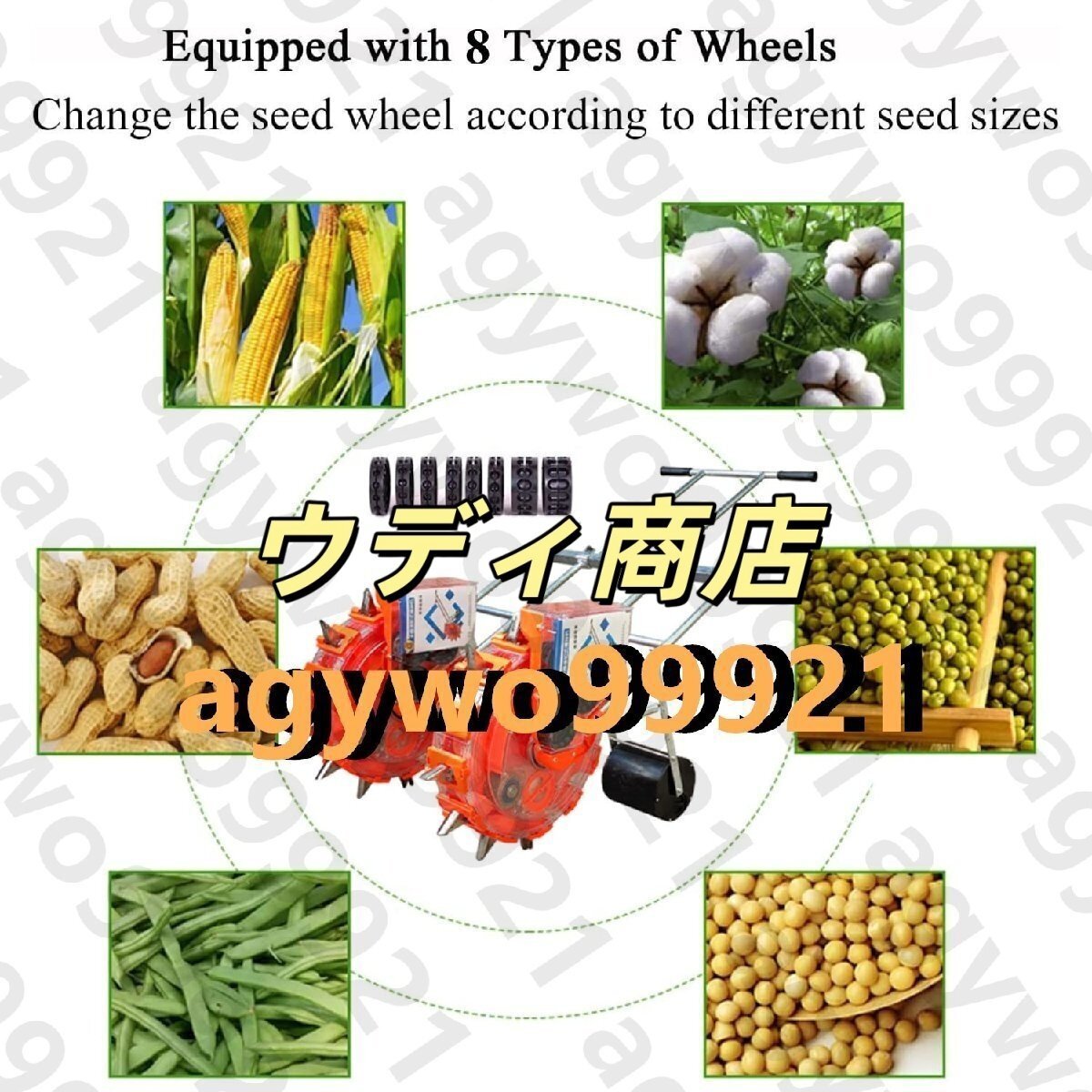 ハンドプッシュ多機能シーダーは、小さな農地や家庭菜園に適した農具で、さまざまな作物の播種をすばやく便利に行うことができます。手動式多機能シーダーは、簡単で使いやすく、電気や燃料を必要としない、環境に優しく経済的な農業用具です。 小麦、トウモロコシ、大豆、野菜、その他の作物の植え付けに適しており、植え付け効率を大幅に向上させることができます。 同時に、労働集約度を減らし、植え付けの品質と収量を改善することもできます。仕様:製品名: 手押しローラー播種および施肥機植える深さ:1~7cm重量:11kg5口 - 植え付け距離34cm6口 - 植え付け距離29cm7口 - 植え付け距離25cm8口 - 植え付け距離22cm9口 - 植え付け距離19cm10 口 - 植え付け距離 17 cm12 口 - 植え付け距離 15 cmパッケージ:1×ウォークビハインドロークロッププランター8 x 異なる種子設定ホイール WTTTTW 2列手動播種機 手押し式ガーデンシーダー、種子散布機 歩行式列作物プランター ローラー播種および肥料散布機 大豆 ピーナッツ トウモロコシ 綿花 大豆用ポータブル種子プランター 7 mouths 2列手動播種機 手押し式ガーデンシーダー、種子散布機 歩行式列作物プランター ローラー播種および肥料散布機 7 mouths