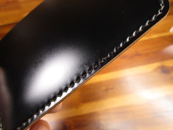 ◆革最高級皮革、新喜皮革製コードバンを使用。 美しい黒と艶が所有感を満たしてくれます。 相手に栃木レザー社製ナチュラルタンニンレザーとイタリアンレザーを使用。 ご愛用いただくと色艶深まエイジングが楽しみな革です。 ※コードバンの表面にキズ、スジ、跡が見られる部分がございます。