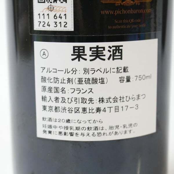 | 商品名稱 : | CHATEAU PICHON LONGUEVILLE(シャトー ピション ロングヴィル)バロン 2014 13.5% 750ml G25J280051 |