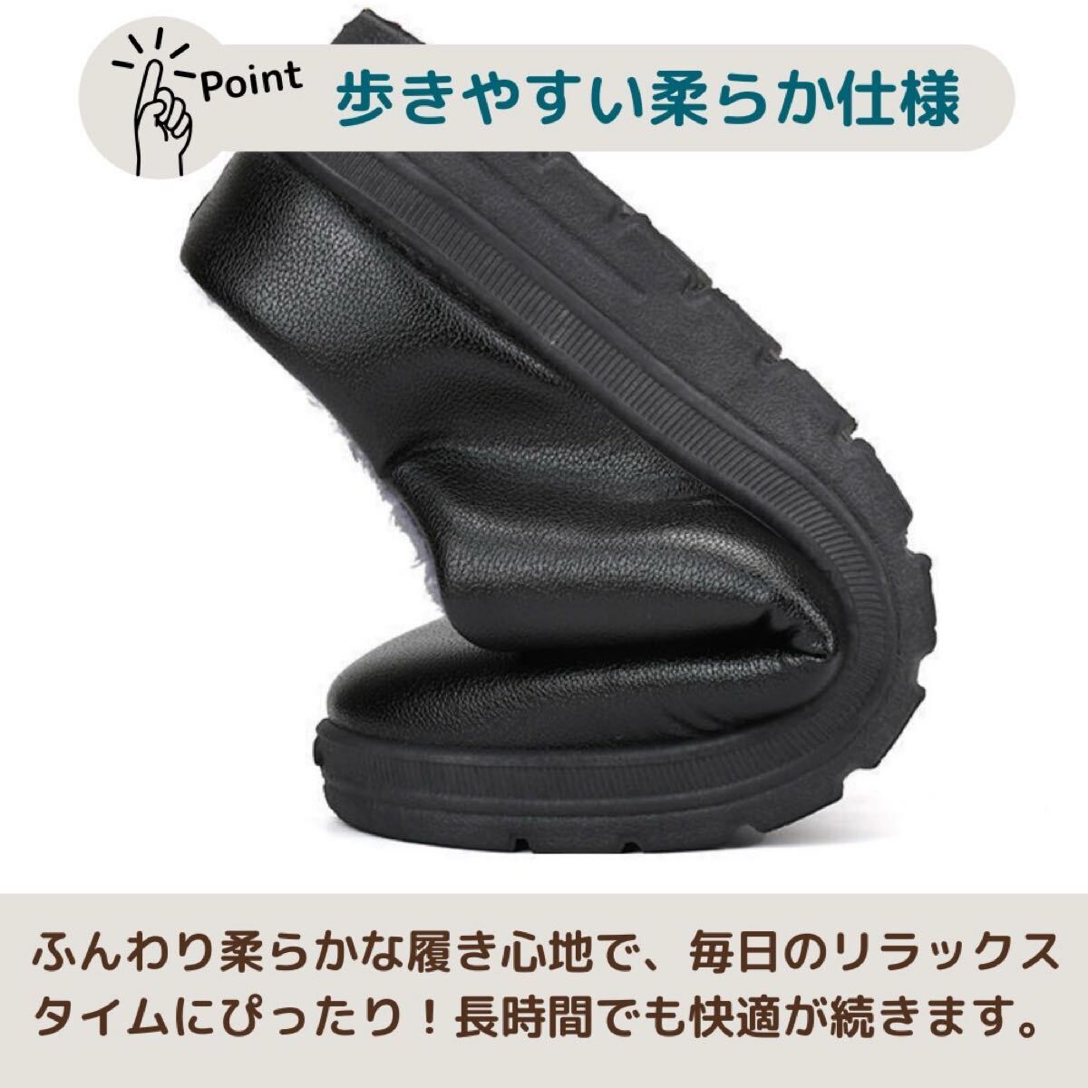 ボアサンダル スリッパ 暖かい メンズ レディース 冬 裏ボア ルームシューズ あったか レザー調 滑り止め ブラック 25.5
