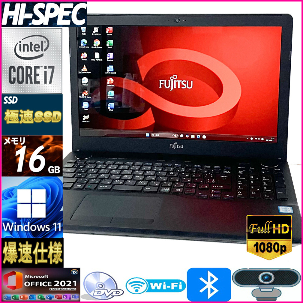 ☆ フルHD★ハイエンドi7【メモリ16GB/爆速新品SSD/Core i7-6700HQ】人気富士通ノートパソコン/Win11/Office2021/Bluetooth/Webカメラ/USB3.0 ☆