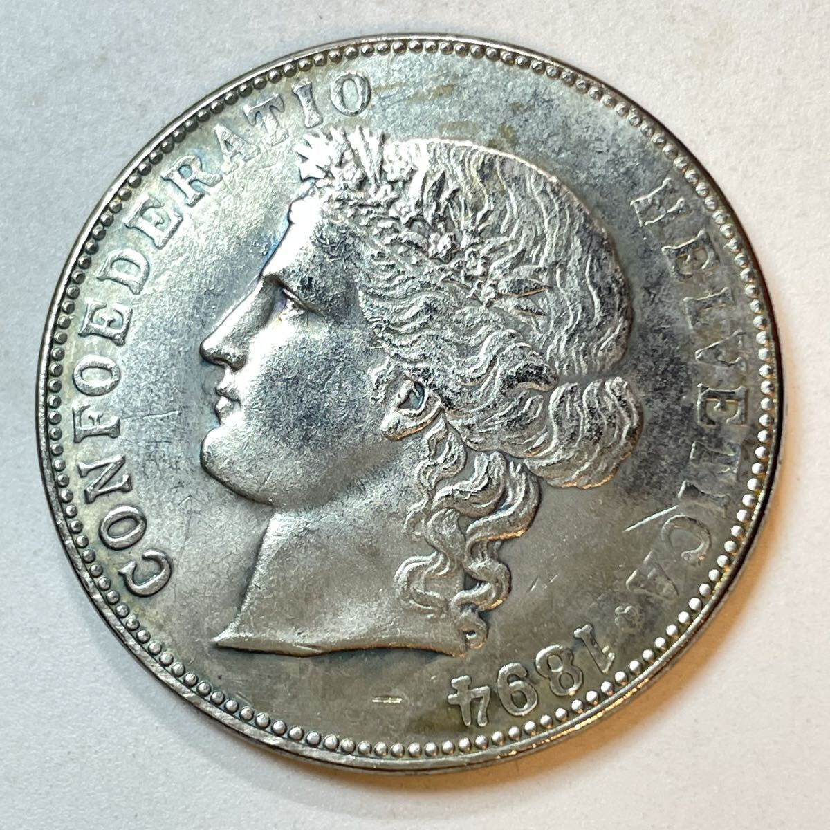 ご覧頂きありがとうございます。 ご縁がありますように、1円から出品します。 ヘルヴェティア(Helvetia)は、アルプス山脈とジュラ山脈に囲まれた台地からなる古代ヨーロッパ中央地域のローマ名であります。ほぼ現代のスイス西部に該当し、その名前は現在でも詩的に使われています。ヘルヴェティアはスイスを象徴する女性に擬えられます。「スイスの母」とも呼ばれ、長い外衣を着用し、槍とスイス国旗が描かれた盾を持ちます。そして通常は編んだ髪と、連邦の象徴としてのリースを持っています。 注意: ◆個人コレクターや中古屋等から収集した物で、鑑定はしておりません、参考品(レプリカ)として出品します。ご確認の上ご入札ください。 (かんたんな磁石テストをして付きませんでした。一番最後の写真でご確認ください。) ◆タイトルにある商品の記述と画像と合わない場合があります。画像を優先してご判断ください。 ◆発送はゆうパケットポストより発送します。追跡番号は「取引連絡」よりご確認できます。 ◆お支払いはご落札後24時間内連絡がない方はキャンセルさせて頂くことがあります。取り置き必要な方は一言をください。ご連絡頂けない場合は「落札者都合」にてキャンセルさせて頂きます。 ◆まとめて取引のご利用をお勧めします。 ◆状態につきましては画像にてご判断ください。 ◆光の加減等により、画像と実物の色合いが若干異なる場合があります。 ◆ご入札中/落札後、入札ミスなどのような理由でキャンセルされる場合、悪い評価をさせて頂きます。ご理解とご検討の上ご入札ください。 ◆トラブルやすり替え防止のため、返品は受け付けられませんのでご理解ください。 ◆添付画像からご判断できない方は、ご入札しないでください。 >