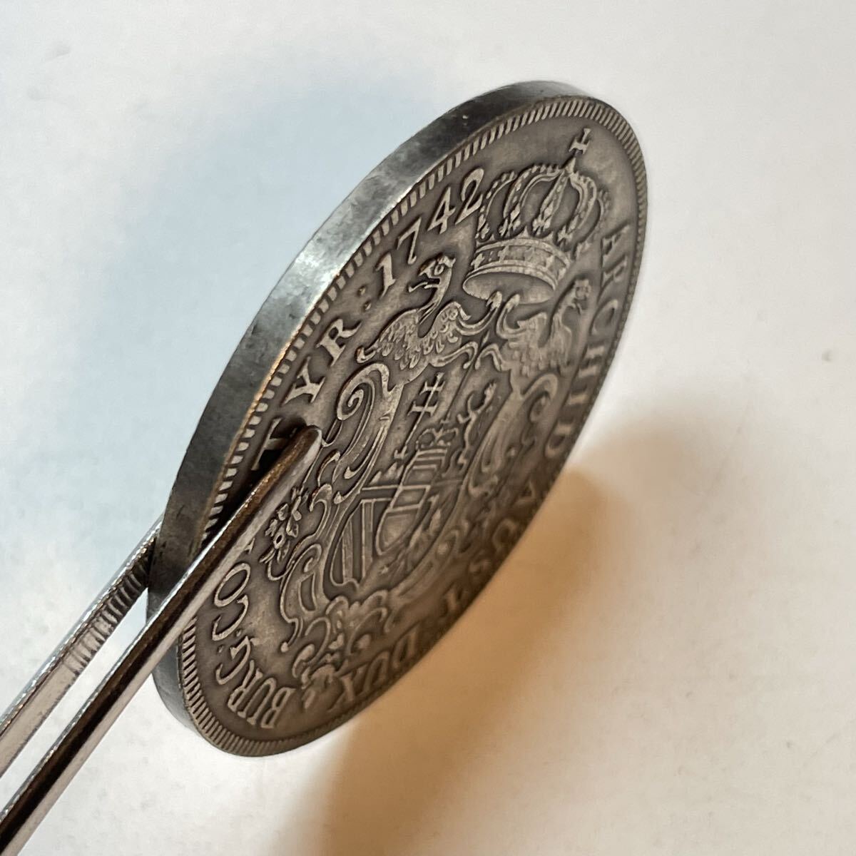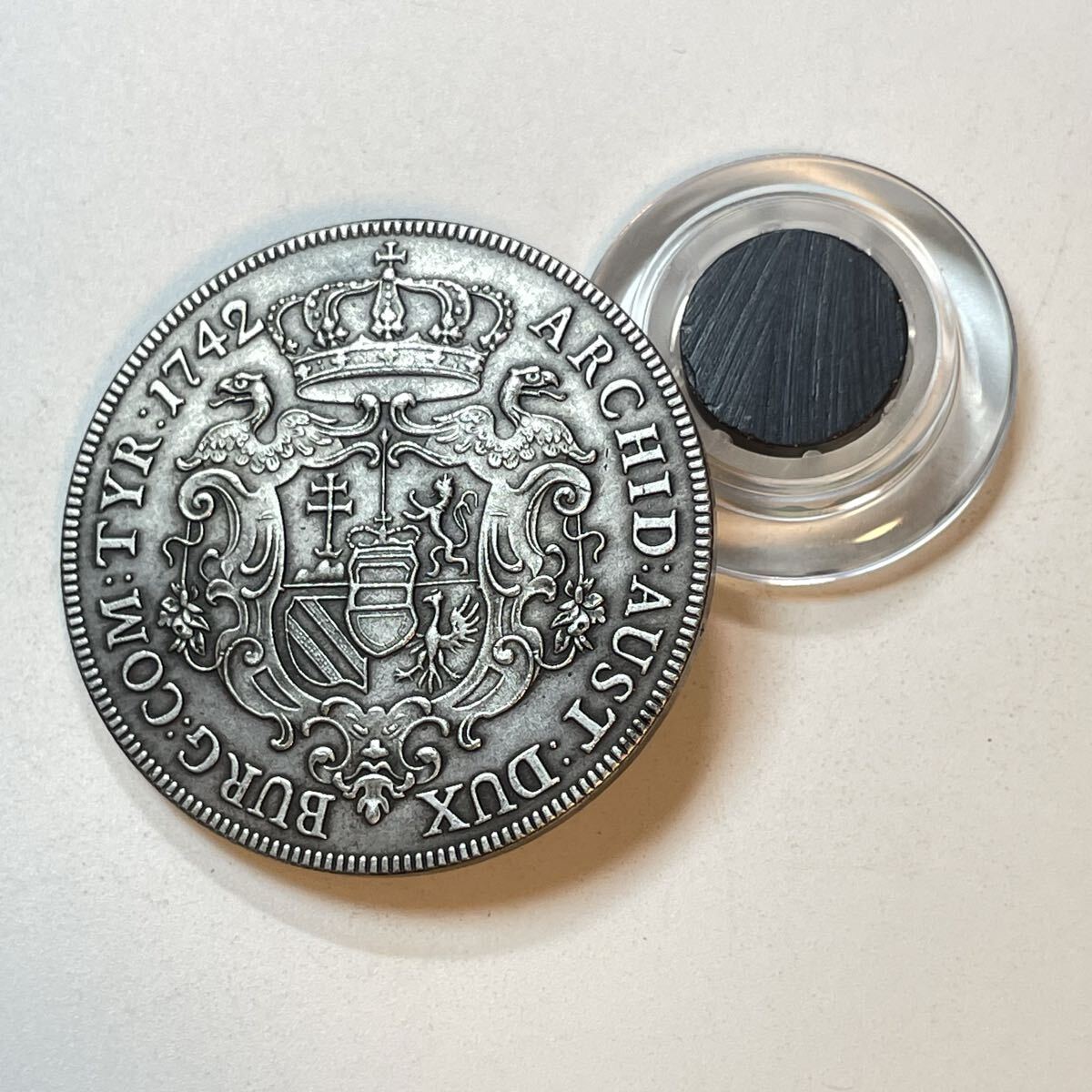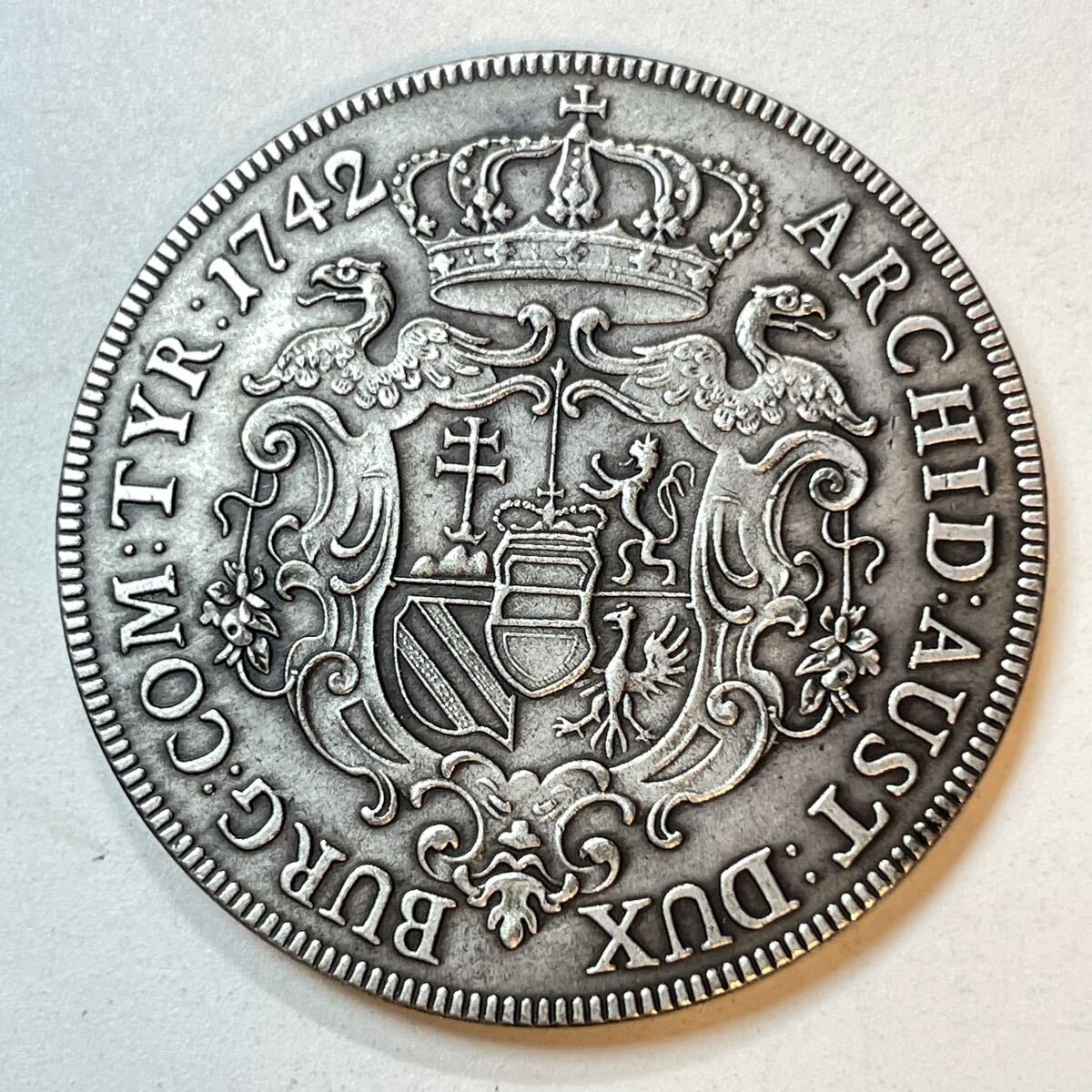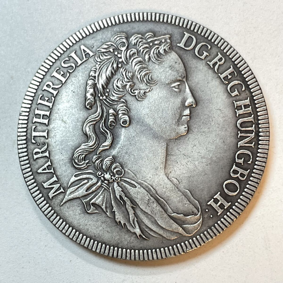 ご覧頂きありがとうございます。 ご縁がありますように、1円から出品します。 マリア・テレジアは、オーストリア女大公・ハンガリー女王・ボヘミア女王でした。実質的な「女帝」として君臨しました。実際の称号は皇帝ではなく、「神聖ローマ皇后」でした。オーストリア系ハプスブルク家男系最後の君主であり、彼女の次代から、つまり子供たちの代からが正式に、夫の家名ロートリンゲンとの複合姓(二重姓)でハプスブルク=ロートリンゲン家となります。 注意: ◆個人コレクターや中古屋等から収集した物で、鑑定はしておりません、参考品(レプリカ)として出品します。ご確認の上ご入札ください。 (かんたんな磁石テストをして付きませんでした。一番最後の写真でご確認ください。) ◆タイトルにある「金貨」「銀貨」など商品の特定商品名に関する表示は、商品の外観から判断し、あくまでも商品検索用として記入したものです。予めご了承の上、ご入札をお願い致します。 ◆タイトルにある商品の記述と画像と合わない場合があります。画像を優先してご判断ください。 ◆発送はゆうパケットポストより発送します。追跡番号は「取引連絡」よりご確認できます。 ◆お支払いはご落札後24時間内連絡がない方はキャンセルさせて頂くことがあります。取り置き必要な方は一言をください。ご連絡頂けない場合は「落札者都合」にてキャンセルさせて頂きます。 ◆まとめて取引のご利用をお勧めします。 ◆状態につきましては画像にてご判断ください。 ◆光の加減等により、画像と実物の色合いが若干異なる場合があります。 ◆ご入札中/落札後、入札ミスなどのような理由でキャンセルされる場合、悪い評価をさせて頂きます。ご理解とご検討の上ご入札ください。 ◆トラブルやすり替え防止のため、返品は受け付けられませんのでご理解ください。 ◆添付画像からご判断できない方は、ご入札しないでください。 >
